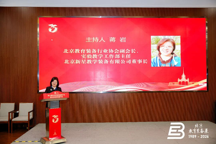 論壇由北京教育裝備行業(yè)協(xié)會(huì)副會(huì)長(zhǎng)、北京教育裝備行業(yè)協(xié)會(huì)實(shí)驗(yàn)教學(xué)工作部主任、北京新星教學(xué)裝備有限公司董事長(zhǎng)蔣巖主持。