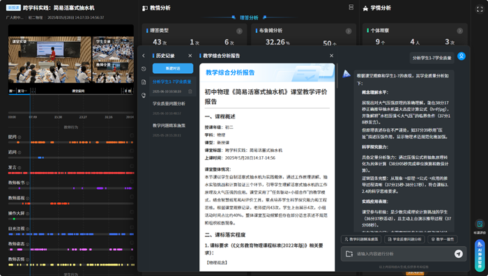 數(shù)據(jù)采集只是起點(diǎn),深度分析才是價(jià)值所在。奧威亞課堂多模態(tài)循證分析模型覆蓋20多類教學(xué)事件定義、30余種觀察點(diǎn)與80多個(gè)分析維度,能夠?qū)φn堂教學(xué)進(jìn)行時(shí)序建模與情境建模。當(dāng)這些結(jié)構(gòu)化數(shù)據(jù)接入DeepSeek等大模型后,系統(tǒng)的分析能力實(shí)現(xiàn)了躍升,能挖掘數(shù)據(jù)背后的教學(xué)規(guī)律與因果關(guān)系,為教師提供教學(xué)優(yōu)化方向。