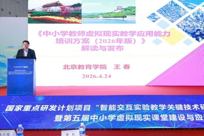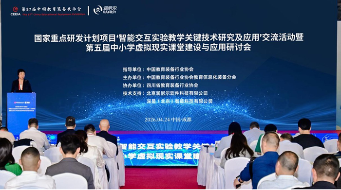 2026年4月24日,國(guó)家重點(diǎn)研發(fā)計(jì)劃項(xiàng)目“智能交互實(shí)驗(yàn)教學(xué)關(guān)鍵技術(shù)研究及應(yīng)用”交流活動(dòng)暨第五屆中小學(xué)虛擬現(xiàn)實(shí)課堂建設(shè)與應(yīng)用研討會(huì)在四川成都召開(kāi)。活動(dòng)聚焦虛擬現(xiàn)實(shí)、人工智能與中小學(xué)課堂教學(xué)深度融合,詳細(xì)介紹項(xiàng)目實(shí)驗(yàn)區(qū)、實(shí)驗(yàn)校工作推進(jìn)路徑,配套發(fā)布教師VR教學(xué)應(yīng)用能力培訓(xùn)方案,并分享各地實(shí)踐案例,為“人工智能+教育”行動(dòng)計(jì)劃提供技術(shù)支撐與實(shí)踐路徑。