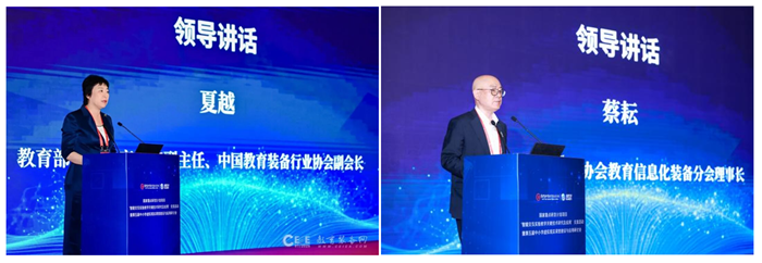 教育部宣傳教育中心副主任夏越、中國(guó)教育裝備行業(yè)協(xié)會(huì)教育信息化裝備分會(huì)理事長(zhǎng)蔡耘為本次交流活動(dòng)致辭,常務(wù)副理事長(zhǎng)丁新作總結(jié)講話,交流活動(dòng)由分會(huì)秘書長(zhǎng)孫強(qiáng)主持。