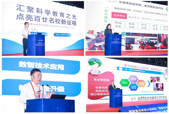 會(huì)議期間,來(lái)自全國(guó)各地的學(xué)校代表與教研員結(jié)合一線教學(xué)實(shí)際,多角度展示智能交互實(shí)驗(yàn)教學(xué)應(yīng)用成果。山西省新絳中學(xué)是首批全國(guó)科學(xué)教育實(shí)驗(yàn)校,薛寶良校長(zhǎng)以“匯聚科學(xué)教育之光,點(diǎn)亮百廿名校新征程”為題,介紹新絳中學(xué)通過(guò)VR技術(shù)革新課堂、構(gòu)建科學(xué)教育三維課堂新生態(tài)、振興縣中教育的實(shí)踐路徑;遼寧省大連市第十三中學(xué)校長(zhǎng)于曉麗以“深耕科學(xué)教育沃土,培育創(chuàng)新時(shí)代新人”為題,介紹學(xué)校運(yùn)用智能交互與虛擬現(xiàn)實(shí)技術(shù)重構(gòu)實(shí)驗(yàn)教學(xué)、提升學(xué)生科學(xué)素養(yǎng)的創(chuàng)新實(shí)踐;重慶市永川區(qū)鳳凰湖小學(xué)黨委書記王傳西以“數(shù)智賦能重實(shí)效,線面體協(xié)同育新人”為題,展示學(xué)校智慧校園建設(shè)與VR資源進(jìn)課堂的扎實(shí)成效。
