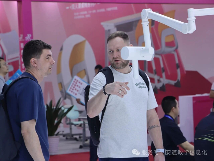 此次展會,安道教育攜AI教育裝備產品和服務精彩亮相,以硬核實力收獲了全國教育同仁的高度關注與認可。展會三天,展位人流絡繹不絕,院校領導、一線教師及海內外客商密集駐足交流、親身體驗產品,領略 AI 重構教學生態的創新價值。