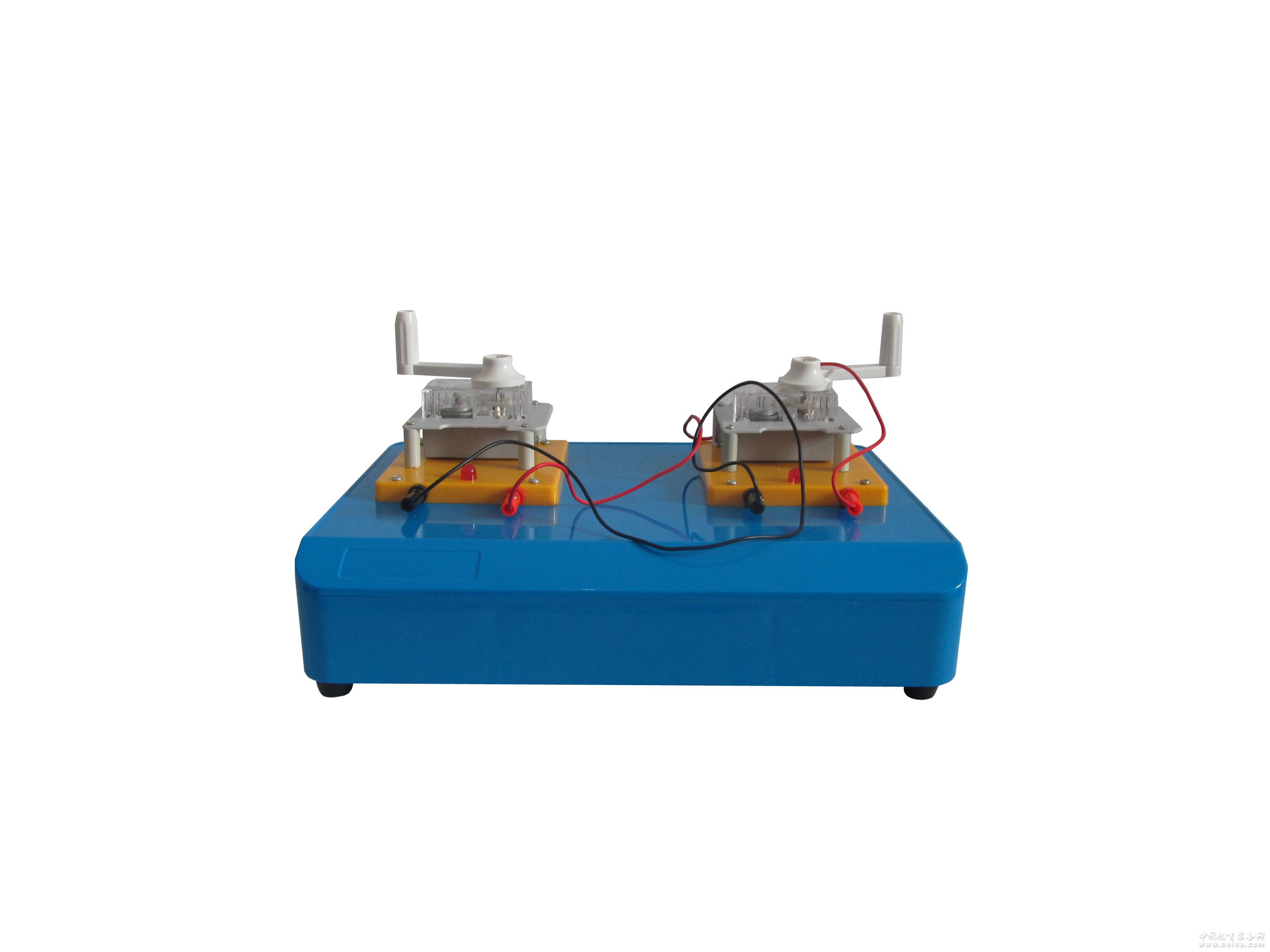 實驗目的: 1、研究電能轉化為機械能。 2、探究機械能轉化為電能、光能等。 實驗器材: 發電機、電動機、發光二極管、穩壓電源。 實驗過程: 1、將儀器放在桌面上,并將5伏穩壓電源插入電源插座。 2、按動轉換開關,注意觀察。 探究問題: 1、電動機為什么一會正轉,一會反轉? 2、如果正轉時,紅色發光二極管亮,為什么反轉時,綠色發光二極管才會亮呢? 3、電動機通電后可旋轉,如果驅動電動機旋轉后,它也會發電嗎? 4、電動機與發電機之間為什么用細彈簧連接?有什么好處? |