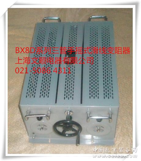 產(chǎn)品詳細(xì)介紹 BX8D 10k 350mA 手搖可調(diào)電阻箱 滑線變阻器(又叫滑動(dòng)變阻器,同一種產(chǎn)品) BX7D/BX8D系列滑線變阻器本產(chǎn)品適用于50Hz、380V以下,直流440V以下的電路中,在電氣機(jī)械設(shè)計(jì)階段中作變更電流、電壓和作為代替未定阻值的可變電阻器應(yīng)用,在實(shí)驗(yàn)室中作研究試驗(yàn)或教學(xué)演示用的電流、電壓調(diào)節(jié)器,以及作為發(fā)電設(shè)備和直流電動(dòng)機(jī)的勵(lì)磁、調(diào)速電阻等之用。 本產(chǎn)品采用經(jīng)過(guò)氧化絕緣處理的康銅絲,密繞于瓷管上,并固定于金屬保護(hù)支架上,通過(guò)接觸系統(tǒng)的導(dǎo)電電刷,在康銅絲表面移動(dòng),以達(dá)到改變阻值的大小。