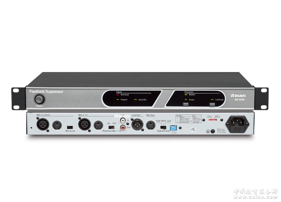 產品詳細介紹產品特點: 1、★數字DSP移頻處理功能; 2、★超高速反饋消除功能; 3、★采用回音抵消和消除反射的算法有效濾除煩人的反射聲; 4、★兩路XLR平衡式Mic/Line輸入,兩路專用五芯Mic輸入,有48V幻象電源; 5、★一路XLR平衡式混音輸出,一路專用五芯混音輸出; 6、★迅速檢測出信號中的反射成分,并在聲學反饋出現之前將其除去, 同時保持初始信號完好無損; 7、★自適應性過濾器可以在“快速”模式和“精準”模式之間進行轉換; 8、★內置自動混音器,且輸入電平值三段可調; 額定電壓: 220V/50Hz 取樣頻率: 32KHz 失真率: ≤0.1% @1KHz 信噪比: >90dB 信號延時: 7ms(音樂模式) 信號延時: 11ms(語音模式) 輸入阻抗: 20KΩ 輸出阻抗: 200Ω (平衡) 頻率響應: 20Hz-20KHz |