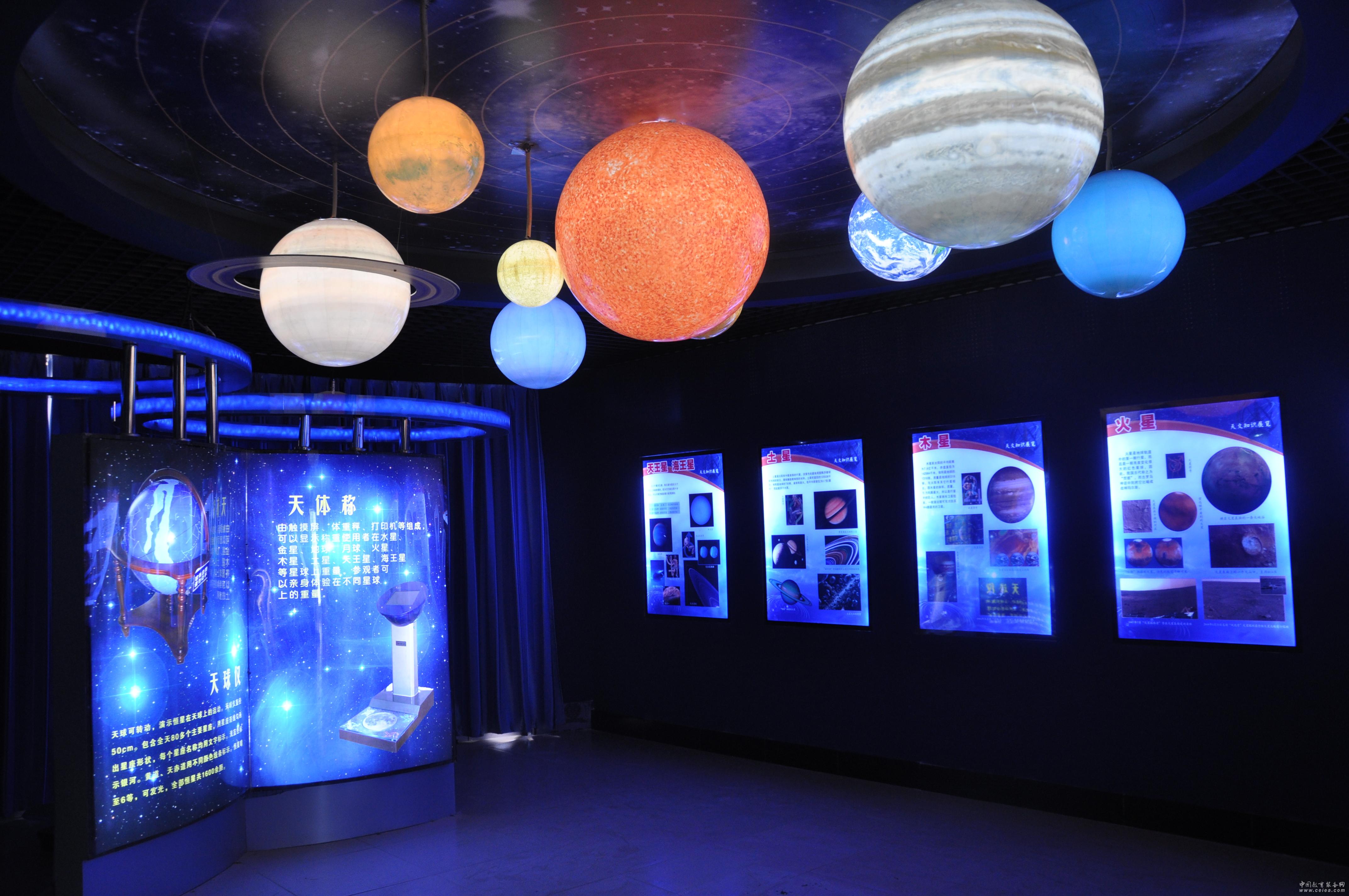 三、演示系統(tǒng) 演示系統(tǒng)主體由球體和星空?qǐng)D組成,球體置于星空?qǐng)D中,遙相呼應(yīng)。9顆球體還原太陽和各行星的外觀形態(tài),等比例縮放。球體為無縫球,屬國內(nèi)獨(dú)家技術(shù),采用可透光性高分子材料及透明碳纖維開模澆注而成,有效保障了球體的耐沖擊、高透光、壽命長的特性。球面的圖文為高清印刷,外層再涂上2mm透明高分子水晶,做工細(xì)致有質(zhì)感。內(nèi)置在球體里的冷光源可讓演示系統(tǒng)在通電時(shí)通體均勻發(fā)光,無光斑。