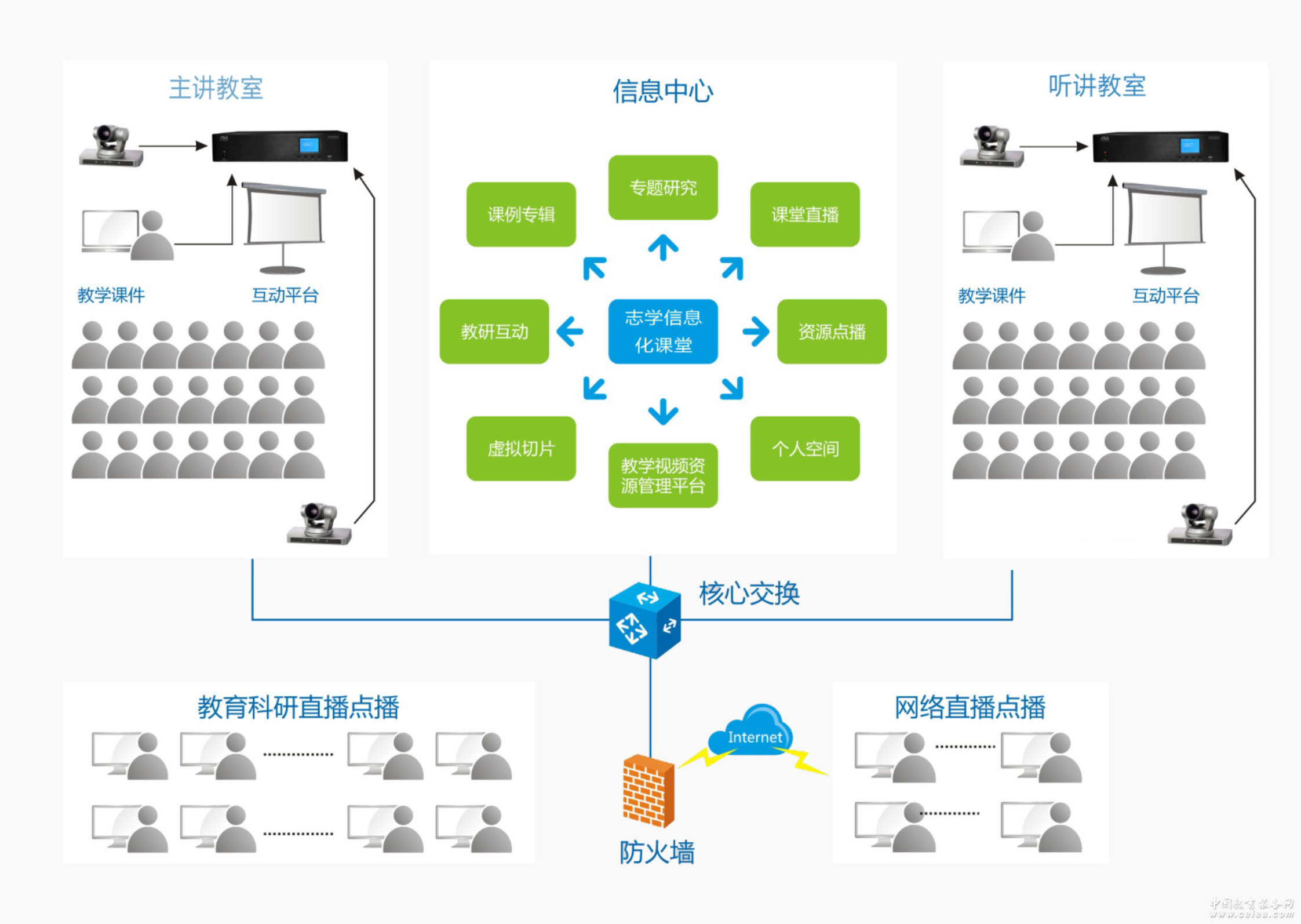 產(chǎn)品詳細(xì)介紹 志學(xué)信息化課堂借助現(xiàn)有的班班通設(shè)備,實(shí)現(xiàn)了同所學(xué)校分校區(qū)多個(gè)教室間的實(shí)時(shí)互動(dòng)教學(xué),還可以使優(yōu)質(zhì)教學(xué)資源在本校常態(tài)化教學(xué)的過程中,同步輻射到其他地區(qū)學(xué)校,同時(shí)滿足了在線學(xué)習(xí)內(nèi)容的創(chuàng)建,傳播和管理,實(shí)現(xiàn)課程網(wǎng)上直播、實(shí)錄、點(diǎn)播和課程網(wǎng)絡(luò)化,擴(kuò)大優(yōu)質(zhì)教育資源覆蓋面的有效機(jī)制,逐步縮小區(qū)域、城鄉(xiāng)、校際差距。 產(chǎn)品特點(diǎn): 1、一鍵操作; 2、全面監(jiān)管; 3、雙屏顯示 4、實(shí)時(shí)畫中畫直錄播; 5、多終端游覽; 系統(tǒng)功能: 1、視頻互動(dòng); 2、教學(xué)協(xié)同; 3、同步播放; 4、直錄播; 5、教育云資源; 應(yīng)用場景: 1、遠(yuǎn)程互動(dòng)教學(xué); 2、遠(yuǎn)程評課; 3、網(wǎng)絡(luò)教研; 4、名師課堂;