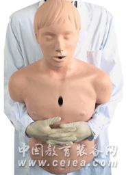 型號:KAL/CPR145 該模型可進行成年人海氏急救法操作。模擬人根據成人解剖特征和生理特點設計,適用于氣管異物的急救。 1、自救腹部沖擊法(適合不完全氣道堵塞病人,意識清醒): ①用自己一手握空心拳,拇指側置于腹部臍上兩指、劍突下處; ②另一手緊握住此拳,雙手同時快速向內、向上沖擊5次,每次沖擊動作要明顯分開;③或者還可選擇將上腹部壓在堅硬物上,如桌邊、椅背和欄桿處,連續向內、向上沖擊5次;④重復操作步驟若干次,直到異物脫出。 2、仰臥位胸部沖擊法操作方法(用于意識不清的病人):①救護人將病人放置好仰臥體位,并騎跨在病人兩大腿外側;②胸部沖擊手的定位與胸外心臟擠壓部位相同;③兩手的掌根重疊,快速沖擊5次,每次沖擊均間隔要清楚;④重復操作步驟若干次,檢查異物是否排出;⑤檢查呼吸、心跳,如呼吸心跳停止,立即CPR。 功能特點: ■ 正常的氣道阻塞模擬; ■ 可進行CPR操作、氣道開放和胸部壓迫模擬; ■ 氣道貫通自主呼吸運動; ■ 進行成人海氏急救法操作訓練; ■ 模擬頸動脈搏動,根據擠壓用力程度大小,操作者可以分辨頸動脈的搏動程度和頻率; ■ 單獨口鼻部件可更換,每套提供3個口鼻部件; ■ 電源:直流電供電。