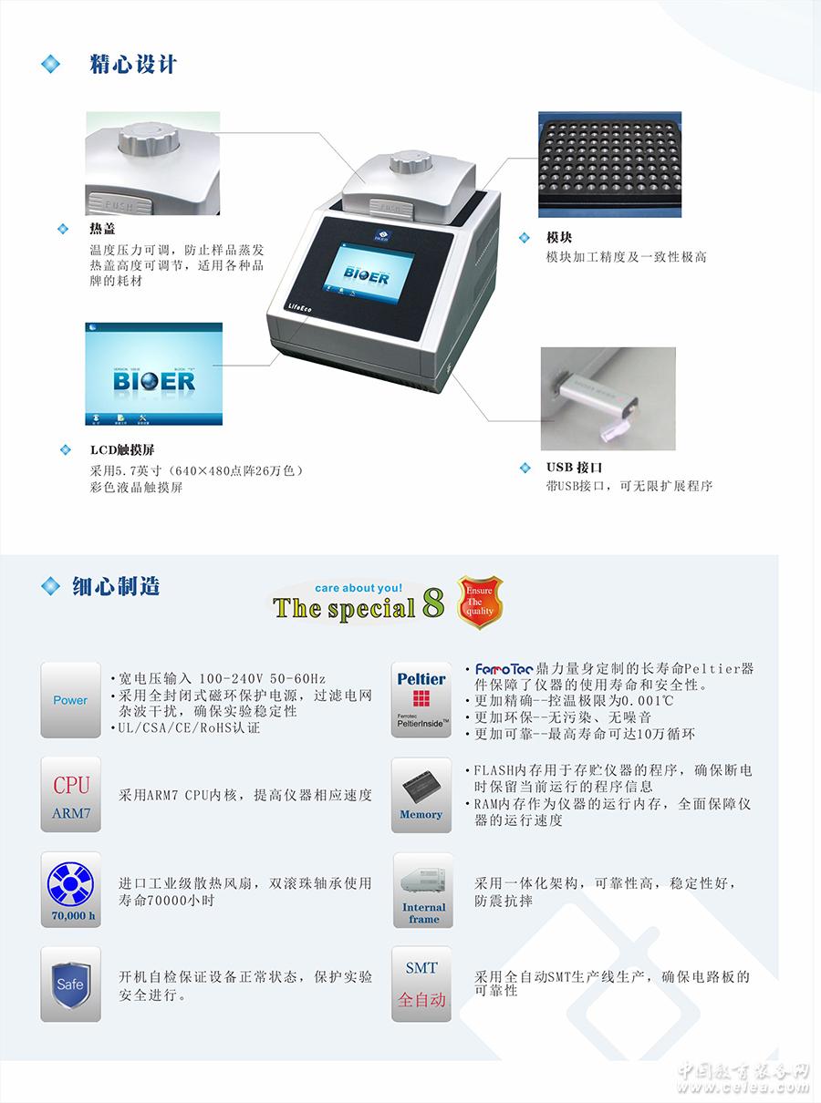 產(chǎn)品詳細介紹 Life ECO 基因擴增儀是2013年繼Life Touch之后博日公司又一款高性價比產(chǎn)品。 此款新片秉承了TC系列一貫的技術(shù)特點,采用先進的熱電制冷技術(shù)和新創(chuàng)的TAS技術(shù),使其整體性能提升至一個嶄新的高度:控溫精度更高、升降溫更快、模塊溫度更均勻、外形體積更小、運行環(huán)境更靜。不僅擁有30℃的最寬限梯度功能,可用來優(yōu)化實驗條件,滿足最苛刻的實驗需求,同時延續(xù)了Life Touch的“USB”功能,引領(lǐng)全球PCR界產(chǎn)品的時尚。在LifeTouch的基礎(chǔ)上,LifeECO更換為更高性價比的5.7英寸增加了LCD彩色觸摸屏,使實驗的顯示和操作方便和直接。 |