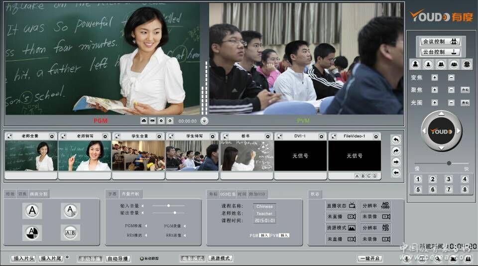 產品詳細介紹1、嵌入式架構管理錄播系統內置于錄播主機中,集視頻預監、視頻切換、云臺控制、音頻調整、直播/錄制、暫停控制、特技效果、特效字幕、LOGO校徽、直播監視等功能于一體; 2、具有單流和多流錄制功能,可支持單流多流同時錄制,產品既可以實現單流多畫面又可實現多流多畫面;并且所錄的每一路視頻文件都能單獨完整的保留,方便后期制作; 3、在錄制文件時支持實時插入片頭、片尾、字幕、LOGO校徽、教師信息、本地視頻文件等功能;支持預設多條字幕,實現課件字幕實時導入功能; 4、支持對話模式,即老師提問時,老師視頻畫面與學生視頻畫面同屏顯示。 5、支持多種特效特技功能多達40種,支持擦除、覆蓋、淡進、淡出等主流切換特效。電影模式下可選擇多種特效轉場和切換功能;資源模式下可選擇畫面分割功能; 6、多種錄播方式:支持全自動、半自動、手動錄制模式(支持鍵盤控制器操作或鼠標點擊),三種種模式可以任意切換; 7、錄制模式支持電影模式、電影加資源模式兩種。電影模式和資源模式可同時工作。錄制電影加資源模式時,資源模式在后臺工作。 8、支持多種靈活的切換策略,用戶也可以根據自己所需自定義設置多機位之間的切換策略;支持老師手動授課機鼠標或鍵盤則錄制畫面自動切換到教師機畫面;為了滿足教室不同環境可實現圖像策略的自由設定、錄播主機與攝像機的策略自由設置; 9、支持VGA鎖屏功能,在錄制電影模式課件時老師可以對VGA進行鎖屏功能,時間可以自定義設置,也可支持VGA信號一直停留在錄制畫面;支持一鍵解鎖功能,讓畫面回到老師畫面; 10、支持具有通道備份功能,各通道碼流可自定義設置;具有23路本地視頻通道功能;本地文件通道可添加mp4格式的視頻文件,支持自動或手動的切換到正在錄制的PGM畫面,并具有循環播放功能; 11、錄播主機內置WEB服務器和流媒體服務器,并具有網絡直播和遠程推送雙功能,即在進行網絡直播時可再推送一路音視頻流至廣域網服務器,用戶可直接通過瀏覽器在校園網/城域網/廣域網上進行接收觀看,很好的兼顧了本校及校際間的直播,并滿足了不同網絡帶寬用戶的需求; 12、錄播主機支持無需外加服務器就可實現少數點的直播;TS直播推流無需任何輔助設備可完成直播功能。 13、支持預約定時功能,可以根據課程安排手動導入教學課表時間。設置好后,錄播主機會根據設定的時間自動啟動錄播主機,完成錄課功能,無需人為操作; 14、錄播主機擁有低能耗、散熱快、超靜音,可長時間工作等優勢。支持錄播主機參數配置的導入導出,方便用戶統一維護和遠程升級調試; |