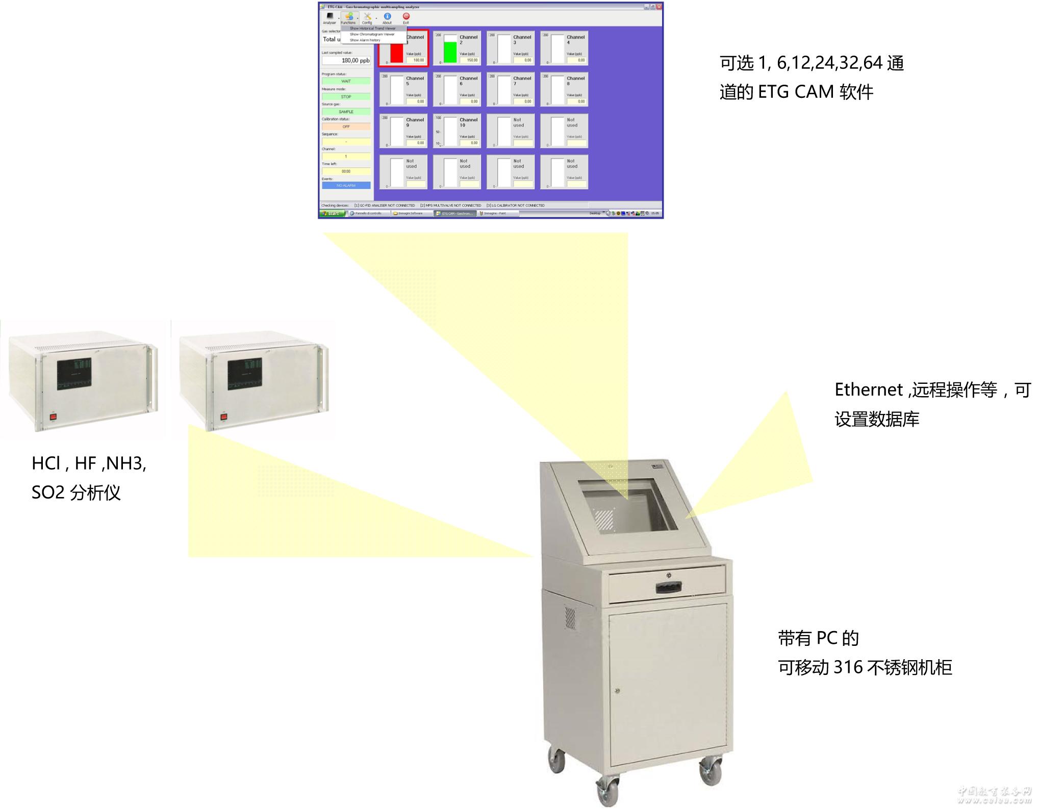 產(chǎn)品詳細(xì)介紹獵戶座 3100S 空氣分子污染物監(jiān)測(cè)系統(tǒng) 痕量級(jí)AMC空氣分子污染物 Ma Mb(NH3,HCL,HF等)監(jiān)測(cè)---半導(dǎo)體行業(yè)應(yīng)用 光刻工藝潔凈室內(nèi)痕量級(jí)NH3,HCL,HF氣體的超高靈敏度、實(shí)時(shí)測(cè)量 實(shí)踐證明深紫外光刻工藝深受多種類微量污染物的影響,對(duì)很多微量污染物極為敏感,比如氨氣或者酸性氣體都會(huì)給半導(dǎo)體生產(chǎn)帶來(lái)極大的危害,盡管隨著深紫外耐腐蝕材料技術(shù)的發(fā)展,已經(jīng)減少了長(zhǎng)時(shí)間持續(xù)實(shí)時(shí)監(jiān)測(cè),而實(shí)際上空氣分子污染(AMC)的實(shí)時(shí)測(cè)量對(duì)產(chǎn)品質(zhì)量的好壞至關(guān)重要。 獵戶座3100S系列空氣分子污染物監(jiān)測(cè)系統(tǒng)基于CEAS(腔增強(qiáng)吸收光譜)技術(shù)連續(xù)分析儀器,將增加半導(dǎo)體器件阻抗一致性、保證更長(zhǎng)的過(guò)濾器壽命、減少生產(chǎn)過(guò)程的停工時(shí)間。 ETG HMI(人機(jī)交互界面)軟件可以實(shí)時(shí)觀察、實(shí)時(shí)測(cè)量、實(shí)時(shí)操作對(duì)不同空間不同位置的NH3、HCL、HF進(jìn)行分析,軟件專門針對(duì)半導(dǎo)體行業(yè)開(kāi)發(fā),對(duì)于深紫外光刻工藝過(guò)程中監(jiān)測(cè)與控制空氣分子污染(AMC)提供有力的支持,軟件集成了多點(diǎn)采樣(MS)控制功能,具有實(shí)時(shí)顯示數(shù)據(jù)曲線、報(bào)警、存儲(chǔ)、趨勢(shì)、歷史曲線、分析等功能。 獵戶座 3100S 系統(tǒng): 完善的空氣分子污染(AMC)監(jiān)測(cè) 實(shí)時(shí)監(jiān)測(cè)空氣分子污染(AMC)對(duì)于半導(dǎo)體生產(chǎn)過(guò)程極為重要。 快速監(jiān)測(cè)、報(bào)警、極低濃度測(cè)量、寬測(cè)量區(qū)域、多氣體的高靈敏響應(yīng)等是半導(dǎo)體工業(yè)要求之一。 深紫外光刻工藝特別關(guān)注氨、胺類、N-甲基吡咯烷酮NMP、酸類等濃度測(cè)量,當(dāng)這些氣體與化學(xué)放大光刻膠反生反應(yīng)時(shí),將深深的影響半導(dǎo)體器件質(zhì)量。 傳統(tǒng)古老的方法多采用間接測(cè)量分析方法。包括撞擊濾塵器、離子色譜、化學(xué)熒光法,這些方法分析速度太慢,操作過(guò)程太復(fù)雜,昂貴并且測(cè)量結(jié)果不精確。 ETG采用被證明的CEAS(腔增強(qiáng)吸收光譜)技術(shù)解決AMC(空氣分子污染物)監(jiān)測(cè)難題,可快速測(cè)量痕量級(jí)NH3、HCL、HF,采用脈沖熒光法測(cè)量SO2,采用增強(qiáng)型GC-FID測(cè)量VOCs。 獵戶座 3100S系列空氣分子污染物監(jiān)測(cè)系統(tǒng)測(cè)量痕量級(jí)NH3、HCL、HF并集成了uVOC-CAM特性,是半導(dǎo)體行業(yè)潔凈室AMC(空氣分子污染)測(cè)量的有力工具。 獵戶座 3100S也集成了多點(diǎn)監(jiān)測(cè)系統(tǒng),可依序?qū)怏w抽送到分析儀或傳感器,并讀出測(cè)量結(jié)果。獵戶座 3100S內(nèi)嵌的報(bào)警、報(bào)告、分析軟件是由多年半導(dǎo)體行業(yè)經(jīng)驗(yàn)的工程師集體開(kāi)發(fā)。 獵戶座 3100S使用Ethernet、RS485/RS232或4-20mA模擬模塊可以輸出來(lái)自4~6臺(tái)分析儀或傳感器的數(shù)據(jù)。 每臺(tái)分析儀配有內(nèi)置計(jì)算機(jī)(Linux OS),可進(jìn)行數(shù)據(jù)存儲(chǔ)和數(shù)據(jù)輸出,還支持遠(yuǎn)程網(wǎng)絡(luò)控制,通過(guò)互聯(lián)網(wǎng)可以連接ETG公司總部或者當(dāng)?shù)亟?jīng)銷商服務(wù)商,進(jìn)行操作或者診斷。 使用者可以通過(guò)網(wǎng)絡(luò)瀏覽器比如IE、Chrome等世界任意可以聯(lián)網(wǎng)的地方進(jìn)行操作,遠(yuǎn)程操作可實(shí)現(xiàn)多級(jí)管理權(quán)限控制和操作。