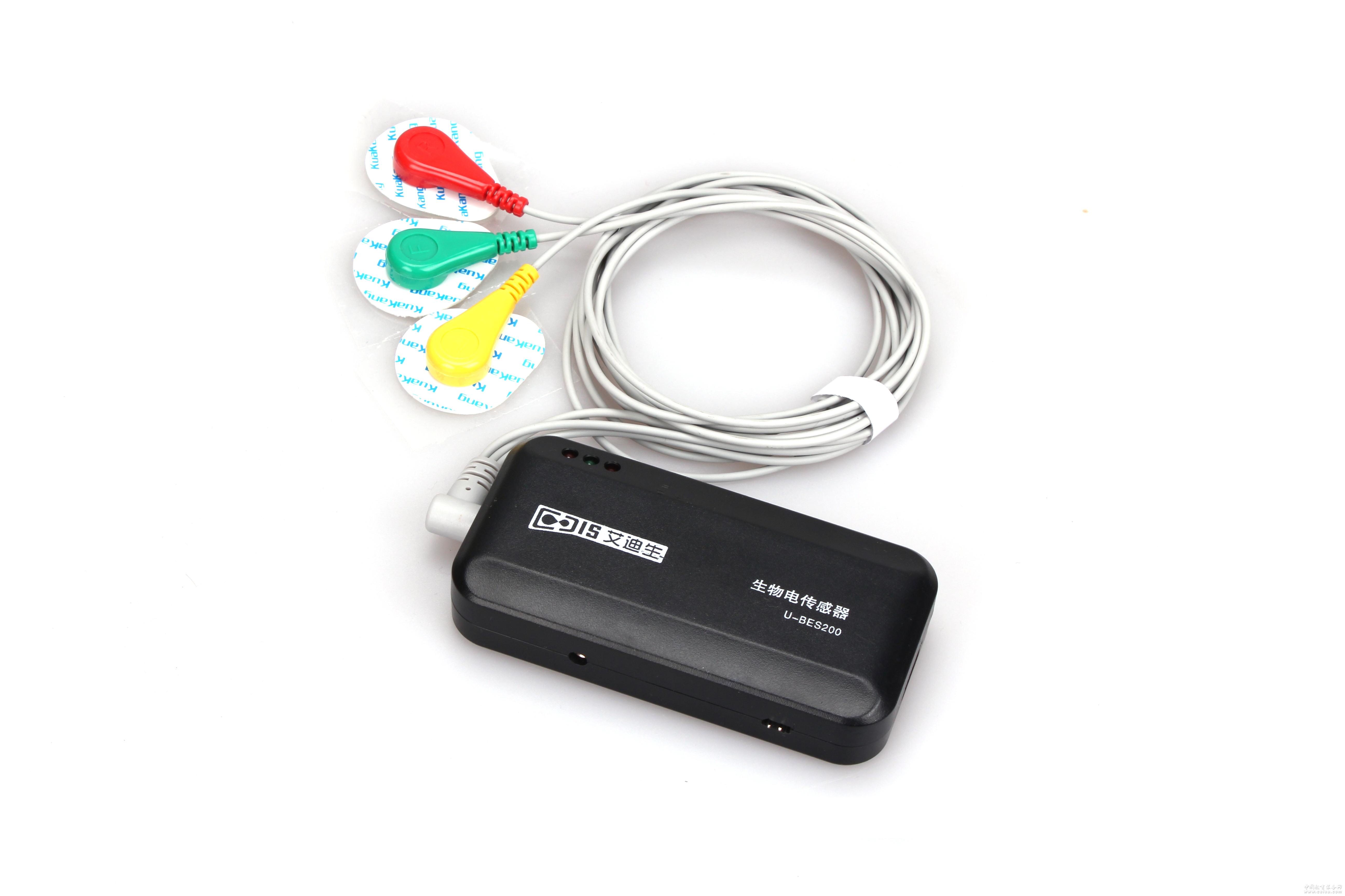 可插拔式生物電探頭,探頭可連接3個EMG貼片。傳感器數據傳輸端口為USB接口,支持與采集器的有線通訊也可直接與電腦通訊檢測生物電信號的強弱。內置電機驅動器連接口,可配合機械手臂完成生物電機械臂控制實驗。