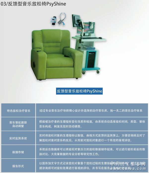 產(chǎn)品詳細(xì)介紹電動控制沙發(fā) 人體工學(xué)設(shè)計,更加放松舒適,內(nèi)置超靜音電機(jī),通過遙控器控制放松椅升降角度。角度調(diào)節(jié)范圍:靠背100度-180度,腿部90度-180度; 體感震動系統(tǒng) 可伴隨音樂起伏律動,進(jìn)行全身按摩,刺激大腦; 內(nèi)置高保真音箱 內(nèi)嵌高保真品牌2.1聲道音響系統(tǒng)一套,3.5mm立體聲耳機(jī)插頭(可外接電腦音樂),并具有USB接口(讀卡器)直接插播mp3等擴(kuò)展高級功能 發(fā)帶 信號采樣率 512Hz 腦波數(shù)據(jù)監(jiān)測及記錄 能夠?qū)崟r、動態(tài)監(jiān)測和記錄專注度、放松度及δ、θ、α、β、γ頻段8個EEG參數(shù)。δ、θ、α、β、γ頻段8個EEG參數(shù),數(shù)據(jù)輸出頻率為1Hz�!皩W⒍� (attention) ”和“放松度 (meditation) ”參數(shù),數(shù)據(jù)輸出頻率為1Hz,可提供至少八種自定義事件標(biāo)記 注意力測評及訓(xùn)練 至少9種注意力訓(xùn)練方法, 所有訓(xùn)練數(shù)據(jù)均自動記錄和分析 支持反饋控制訓(xùn)練,可通過專注度、放松度反饋控制音樂音量及圖像變化效果 心理放松訓(xùn)練音樂 α波音樂、專業(yè)音樂、積極音樂、催眠音樂、純音樂、放松音樂、減壓音樂7大類音樂;不少于100首; 統(tǒng)計分析功能 可對訓(xùn)練記錄數(shù)據(jù)進(jìn)行統(tǒng)計分析,用曲線圖、柱狀圖、餅圖等圖表形式顯示分析結(jié)果,給予訓(xùn)練效果評價,并自動生成報告,訓(xùn)練評價報告采用Word格式 可生成所有用戶的訓(xùn)練報告 支持多用戶信息及訓(xùn)練記錄的管理。管理員可以對所有用戶及其訓(xùn)練數(shù)據(jù)進(jìn)行統(tǒng)一管理,可查看所有用戶的訓(xùn)練記錄并生成訓(xùn)練報告,可進(jìn)行訓(xùn)練記錄的檢索和條件過濾,檢索結(jié)果可導(dǎo)出為標(biāo)準(zhǔn)格式數(shù)據(jù)文件,該數(shù)據(jù)文件可供Excel、SPSS等第三方數(shù)據(jù)分析軟件進(jìn)行數(shù)據(jù)處理和分析 心理放松圖片和視頻 放松圖片不少于300張,放松視頻不少于50個。 |