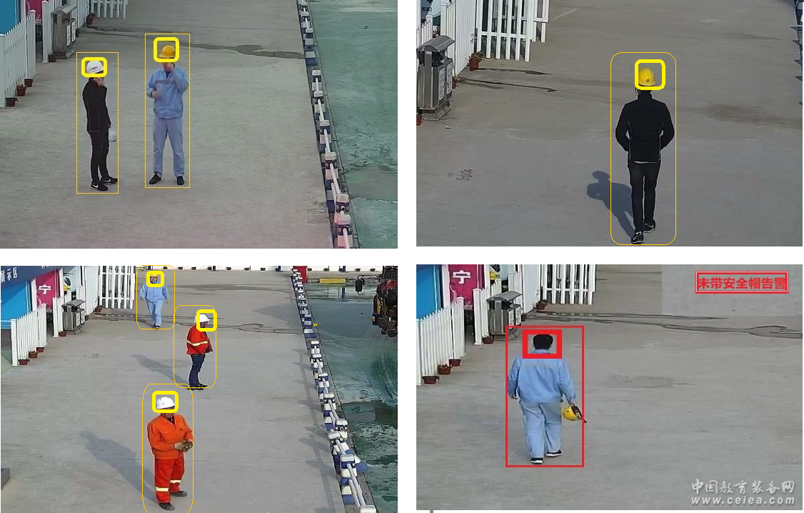 模式二:動態(tài)監(jiān)測模式 在安全生產(chǎn)區(qū)域內(nèi)部署安全帽識別系統(tǒng),通過對攝像機畫面內(nèi)是否有人員活動實時監(jiān)測,當檢測到有人時,識別檢測在崗人員是否佩戴安全帽,若未佩戴安全帽則輸出報警信息,通知后臺監(jiān)控人員。