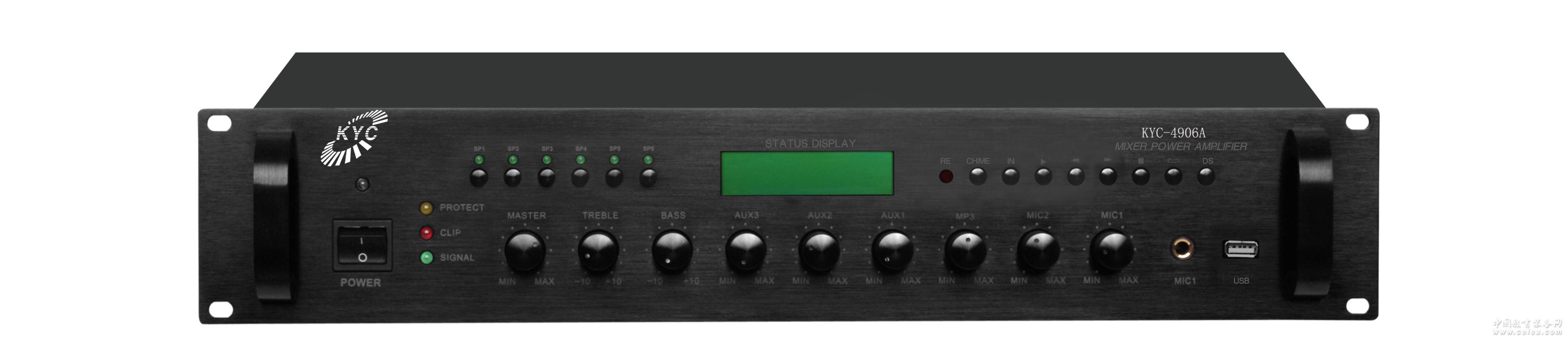 產品詳細介紹小型PA系統性價比最優的理想選擇 內置USB接口MP3解碼器,兼容MP3/WAV音樂播放格式 內置AM/FM數字調諧器,自動選臺,可存儲60個頻道 帶6個分區選擇輸出 高音/低音控制,總音量和獨立的音量控制 3路話筒輸入,3路線路輸入,2路緊急輸入,1路輔助輸出 具有3級優先功能,話筒1為最高級優先,其次到緊急輸入優先 具有自動抑制功能,靜音強弱可隨意調節 具有輸出短路、過載、過熱等多種保護和警告功能 采用先進高效功率放大電路 70V、100V定壓輸出和4~16Ω定阻輸出 |