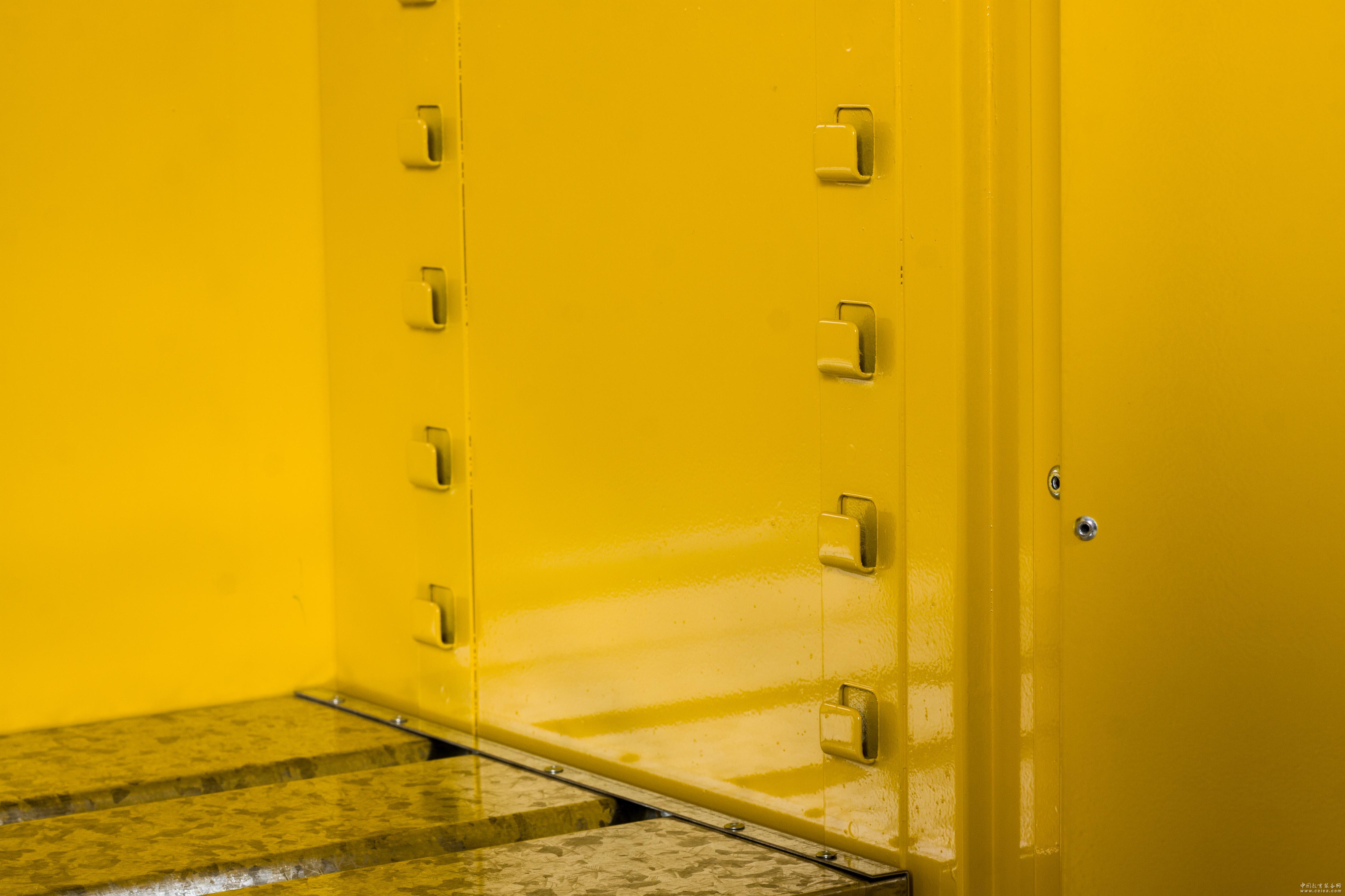 ◆超高性能的蘇慈(SUCI)安全柜達到OSHA29CFR1910.106(美國職業安全健康管理局)標準、符合NFPA CODEE30(美國國家消防協會)第30條的相關標準要求用于規范存儲易燃、易爆、腐蝕性液體及危險化學品; ◆化學品安全柜全系列產品已獲得歐盟CE認證,敬請放心購買; ◆全部雙層鋼板構造,二層鋼板之間相隔有38mm絕緣層; ◆雙層優質鋼板經過點焊接,使用壽命延長,防火性能更好; ◆優質三點聯動式門鎖和鋅合金鎖舍,輕松自如啟閉180度的柜門配有雙鑰匙; ◆可選配一把掛鎖,實現雙人雙鎖的安全管理要求; ◆5cm高的防漏液槽使意外流出的液體不外溢; ◆專業規范的警示標簽顯而易見; ◆裝有防閉火裝置的雙透氣孔分別位于柜身左下角、右上角; ◆獨有的超強承重鍍鋅層板可在每11cm層檔上下自由調節; ◆柜子內外都噴涂環氧樹脂,耐腐蝕性更佳; ◆嚴格按照OSHA規范,柜身設有靜電接地傳導接口,方便連接接地導線,將靜電荷導入大地,降低靜電火花造成火災風險; ◆可根據不同客戶的具體要求進行非標定制,滿足您的實際需求; ◆柜體頂部、后背設計成氣體壓力釋放處,緩解發生爆炸時壓力向四周噴濺; ◆采用手動開門(自閉門)設計,為確保安全柜防火性能,雙開門的門縫不大于3Mm,且門縫上下大小一致; ◆三點式子彈頭式鋅合金鎖舌,輕松閉合柜門; |