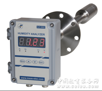 產品詳細介紹煙氣水分儀HJY-350C進口傳感器 技術參數: 測量原理:電容式 顯示方式:4位高亮LED顯示,顯示分辨率0.1 測量范圍:絕對濕度:0 ~ 40% VOL 相對濕度:0 ~ 100% RH (只能同時顯示一種模式,訂貨時請加以說明) 分 辨 率:0.1% 測量精度:<±1.5%FS 重 復 性:<±1% 響應時間:T90<15S 模擬輸出:4-20mA.DC(非隔離輸出,負載電阻小于500歐姆) 2路可編程干觸點型無源報警輸出,觸點畬筧萘�220VAC/2A 其它接口:RS232(默認)或RS485 采樣方式:直插式 樣氣組份:無可燃性氣體、無強腐蝕性氣體,灰塵量小于1mg/Nm3 工作溫度:儀表:-10 ~ +50℃ ,探桿0 ~ 170℃ 供電電源:AC220V 50/60Hz 防 護 性:探桿為316F、 儀表盒防護等級為IP65 使用壽命:儀表>36個月、傳感器>24個月(正常使用條件下) 探頭長度:常規0.5m、1.0m、1.5m,其它長度可定制(<1.8m) 安裝方式:插入式、DN65標準法蘭安裝 儀器特點: 一體化設計,安裝方便,減少外部干擾對測量值的影響; 原裝進口傳感器,能有效保證儀器精度和使用壽命; 高精度的溫度自動補償,消除環境溫度的影響; 可以增加擴展功能對高溫露點值進行精確測量; 兩級粉塵過濾設計,有效過濾粉塵和酸性液體; 探桿316F材質,耐腐蝕性強; 儀表殼體防護等級IP65; 操作簡單、使用壽命長、易維護; 可提供絕對濕度或相對濕度兩種顯示結果(請在訂貨時予以說明)。 應用場合: 廣泛應用于煙氣在線連續監測系統CEMS中脫硫脫硝煙氣濕度的測量,亦可應用于木材、建材、造紙、化工、制藥、纖維、紡織、煙草、蔬菜、食品加工的濕度測控。 備注:若遇到低溫高濕高粉塵環境,我公司將為您提供合理的煙氣濕度解決方案。 訂貨須知(用戶訂貨時請注明) 探桿長度(常規1米) 使用環境溫度 背景氣體組份 |