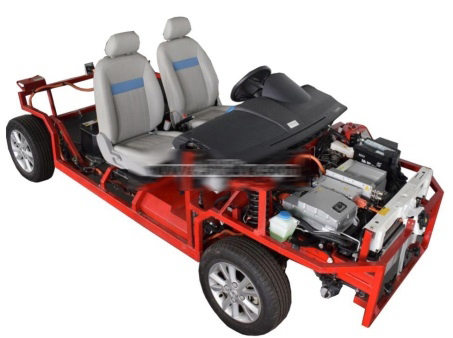 該設備采用 比亞迪E5純電動轎車 拆卸車身,保留原車完整底盤系統。純電動車的完整底盤系統可真實運行操作。