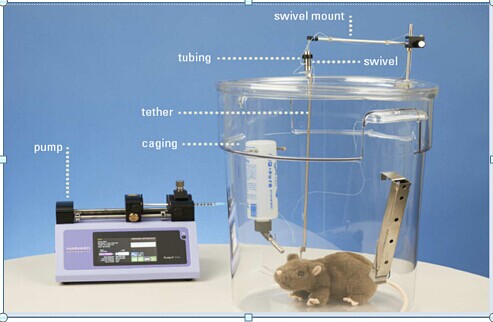 產品詳細介紹清醒動物自動給藥系統是美國Instech公司設備的主要應用之一,主要由灌流泵(pump)、轉環(swivel)、栓繩(tether),體內植入管(catheter),給藥管(Tubing),轉環支架(swivel mount)等部分組成。灌流系統可選擇單通道,或雙通道。轉镮可選不銹鋼或塑料轉镮,栓繩連接于可穿脫式馬甲,或需要外科縫合的鈕扣式外部池。 功能特點: 實現動物靜脈長期,微量,穩定的給藥 動物清醒活動,無需麻醉 一次手術后,可實現長期的間斷性給藥,無需重新手術 動物在不灌流狀態下,可群體飼養,無需單籠飼養 通過優化設計,可以實現灌流給藥和采血,采膽汁同時進行 應用范圍: 1.正葡萄糖鉗夾試驗 2.涵蓋所有采血與給藥實驗 3.其他 葡萄糖鉗夾技術是一種定量檢測胰島素分泌和胰島素抵抗的方法,鉗夾試驗已經成為評估和鑒別β細胞對于胰島素反應敏感性的“金標準”方法。 研究者通過血糖灌注使受試者血糖水平升高至125mg/dl(相當于7.0mmol/l)。通過控制葡萄糖灌注使血糖水平維持在較高水平,通過檢測保持在高水平血糖情況下葡萄糖的灌注量,從而評價葡萄糖代謝率。高葡萄糖變量鉗夾可以評價β細胞對葡萄糖的敏感性。 1.Andres R, Swerdloff R, Pozefsky T, Coleman D. Manual feedback technique for control of glucose concentration. In: Skeggs LT Jr, ed. Automation in analytic chemistry. New York: Medaid, Inc.; 1966, 486–501. 2.Linda von Wartburg, “What's a Glucose Clamp, Anyway?” Diabetes Health. Nov 7, 2007. |