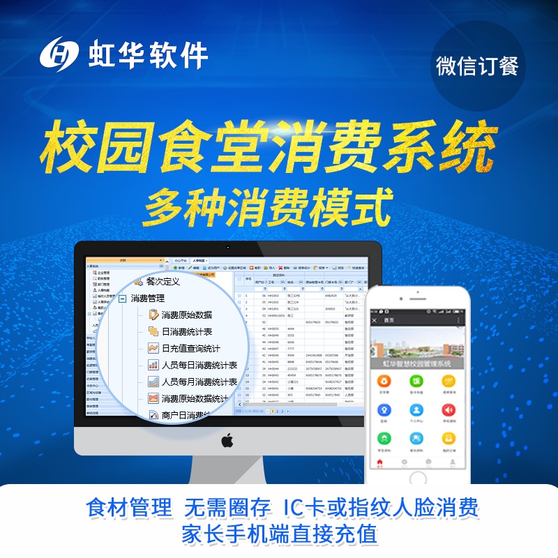 產(chǎn)品詳細(xì)介紹公司介紹 東莞虹華軟件科技有限公司是中國領(lǐng)先的智慧一卡通管理軟件。虹華以自主知識產(chǎn)權(quán)的發(fā)技術(shù)為核心,結(jié)合資深的行業(yè)應(yīng)用解決方案不斷推動和規(guī)范校園信息化管理,17年來以產(chǎn)品實用性和維護(hù)服務(wù)的持續(xù)保障讓企業(yè)客戶廣泛涉及全國各地各行業(yè)。公司先后通過“國家雙軟認(rèn)證企業(yè)”“廣東省民營科技企業(yè)”“高新技術(shù)企業(yè)”等認(rèn)證。 優(yōu)勢 互聯(lián)網(wǎng)架構(gòu) PC電腦端、平板、手機端優(yōu)秀的架構(gòu),讓你省時, 省力,省心。開啟餐飲業(yè)移動互聯(lián)新時代。 豐富的消費模式 豐富的消費模式 有效防止惡意消費,可根據(jù)企業(yè)制度實現(xiàn)日限次、餐限次、日限額、次限額等。可實現(xiàn)不定額∕次∕分時段等多種消費模式,方便用戶使用,提高效率。管理卡、操作卡、消費卡,各種卡有不同的管理操作權(quán)限,加強管理人員對消費機的管理。根據(jù)管理人員及普通員工設(shè)定不同的用餐折扣,或用餐補貼�?蓴�(shù)據(jù)實時消費模式,時實了解消費動態(tài)信息。可實現(xiàn)自定義月底清零或不清零設(shè)定。 多樣的預(yù)訂餐方式 可電腦PC端預(yù)訂餐,可手機微信端或平板電腦訂餐,可消費機消費機訂餐 ,可按早、中、晚餐次訂餐 ,可按湘菜、粵菜、浙菜菜品訂餐,減少浪費,方便快捷 便捷的充值功能 多種充值方式:現(xiàn)金充值/微信充值/工資直接劃扣,滿足單點充值多點食堂就餐的管理需求,首創(chuàng)的自動補貼,無需人工充值,銀行圈存至IC卡自助充值功能 后廚食材管理 虹華后廚食材管理,通過對后廚人員的管理,供應(yīng)商的管理,食材進(jìn)出庫的管理,有效控制后廚成本,保障食品安全。 支付管理 虹華充值支付管理,用戶在手機上就能完成對消費卡的充值、查詢等一系列操作,后臺可對消費模式進(jìn)行設(shè)置,并對所有充值記錄和支付數(shù)據(jù)進(jìn)行細(xì)分和匯總,便于管理方進(jìn)行數(shù)據(jù)分析。 多維度報表 商戶對帳報表,菜品分類統(tǒng)計報表,每日消費明細(xì)表,月度消費明細(xì)表 功能介紹 食堂就餐功能模塊有:餐次設(shè)定、菜品訂餐、餐次訂餐、消費原始記錄,消費報表統(tǒng)計查詢。 校園可以按餐,按次或者根據(jù)每天到校的人數(shù)進(jìn)行合理的膳食安排。也可以實現(xiàn)手機訂餐,菜品查詢訂餐,大大提高學(xué)生在校的生活體驗,食堂可以根據(jù)訂餐的數(shù)量進(jìn)行合理安排膳食從而減少浪費。 1.食堂消費模塊 計次定額消費(現(xiàn)場點餐),自由消費(自選不同價位菜式),折扣消費(內(nèi)部員工價和無折扣價) 2.預(yù)定餐模塊 互聯(lián)網(wǎng)預(yù)訂,手機微信預(yù)訂,訂餐機定餐 3.充值模塊 現(xiàn)金充值,微信充值,工資直接劃扣,雙錢包補貼 4.多維度報表 商戶對帳報表菜品分類統(tǒng)計報表,每日消費明細(xì)表,月度消費明細(xì)表 5.供應(yīng)鏈模塊(ERP) 反算原材料,食品溯源,進(jìn)銷存管理 6.可擴充一卡通 多食堂統(tǒng)一管理,集成企業(yè)內(nèi)部人事考勤工資門禁一卡通功能 7.支持多種品牌的機器設(shè)備:刷卡機、指紋機、人臉機 |