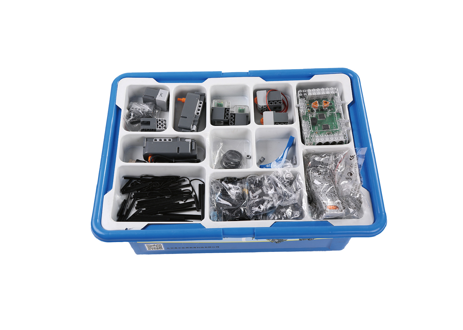 本機器人器材通過配套的課程使得孩子進行手腦間的互動,以達到開發孩子的動手能力與邏輯思維的目的。智能控制器套裝包含:控制器一個、光電傳感器兩個、觸碰傳感器兩個、彩燈傳感器兩個、高速電機兩個和上百種拼插件組成。