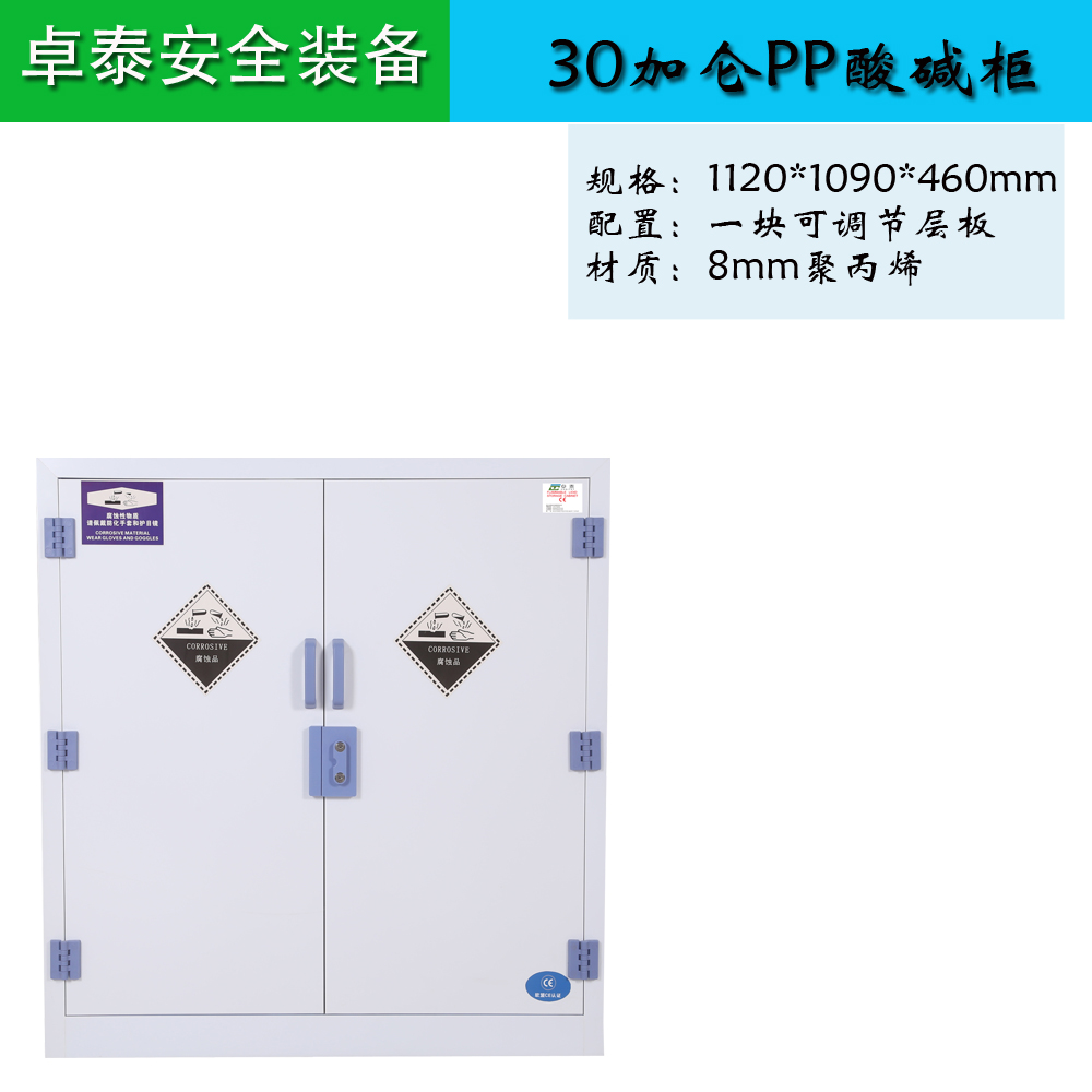 產品詳細介紹宿遷卓泰安全裝備銷售熱線: 銷售部:陳先生13851372037 業務部郵箱:[email protected] 官方網站:www.choitay.com PP酸堿柜具有耐強酸、強堿與抗腐蝕的特性。適用于實驗室各類工具的洗滌對帶有化學特性的試劑瓶或其他物品進行清洗。 產品特色: 1.具有耐強酸、強堿與抗腐蝕的特性。 2.降低環境污染,維護使用者的健康。 制作工藝: 1,柜體采用一體成型、無縫焊技術,極大的加強了柜體的結構性,有效的降低了柜體因熱脹冷縮而引起的變形。 2,層板:采用8mm厚瓷白色優質原料PP板制作,四邊做突起設計 防止濺漏;底部用立式加固條整體焊成型,保證其受重不會變形。 層板為活動式,可隨意抽取 。 3,頂部預留90或者110mm排風口(可選) 4,警示標簽:柜門開口貼有警示標簽,提醒周圍人群注意安全, 材質規格: 1.本體:采用抗強酸堿耐化學藥品,耐沖擊磁白色PP板承制,具有永久性,厚度8mm,抗強酸、化學藥品,耐沖擊,不腐蝕,不生銹。 2.鉸鏈/把手:采用耐強酸、強堿材質,拉門采用同質PP聚丙稀材料制作。 非標規格,可依照客戶需求定制。 型號 外形尺寸(cm) 附 注 選配 高×寬×深 ZT4P 56×43×43 PP8mm板材、單門、一塊隔板、PP雙鎖扣 PP雙暗鎖 ZT12P 89×59×46 PP8mm板材、單門、一塊隔板、PP雙鎖扣 ZT22P 165x60x46 PP8mm板材、單門、兩塊隔板、PP雙鎖扣 ZT30P 112×109×46 PP8mm板材、雙門、一塊隔板、PP雙鎖扣 ZT45P 165×109×46 PP8mm板材、雙門、兩塊隔板、PP雙鎖扣 ZT60P 165*86*86 PP8mm板材、雙門、兩塊隔板、PP雙鎖扣 ZT90P 165*109*86 PP8mm板材、雙門、兩塊隔板、PP雙鎖扣