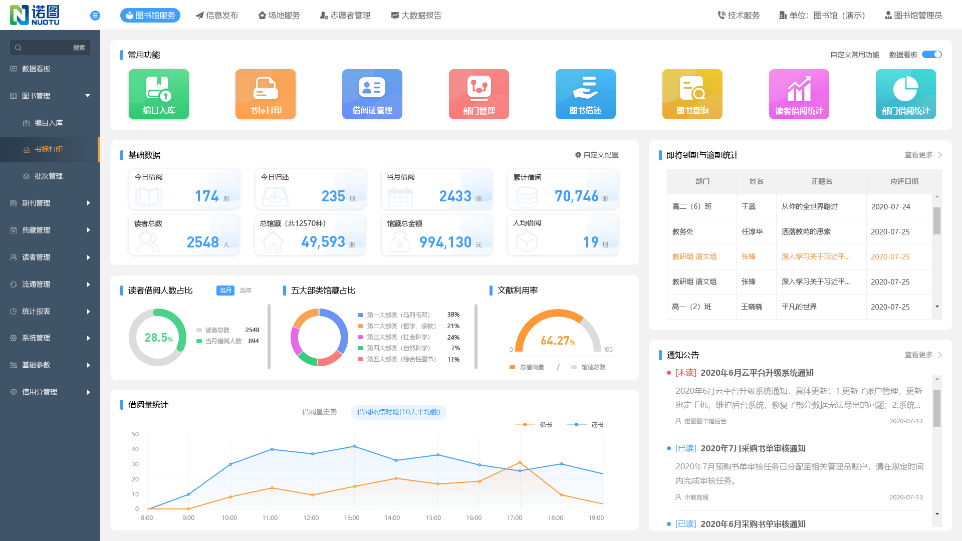 產(chǎn)品詳細(xì)介紹專為學(xué)校圖書館設(shè)計開發(fā),具備數(shù)據(jù)看板、圖書編目、期刊管理、典藏管理、讀者管理、流通管理等標(biāo)準(zhǔn)模塊。并拓展了信用分管理、場地管理、志愿者管理、閱讀專題、朗讀比賽、大數(shù)據(jù)報告、微信圖書館等創(chuàng)新模塊