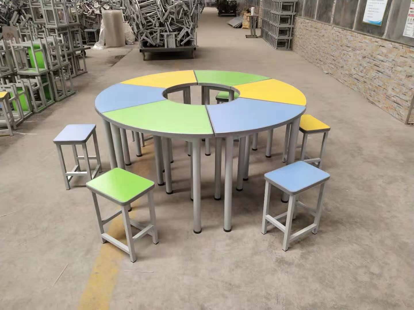 閱覽桌組合桌扇形桌花瓣桌鋼木方凳