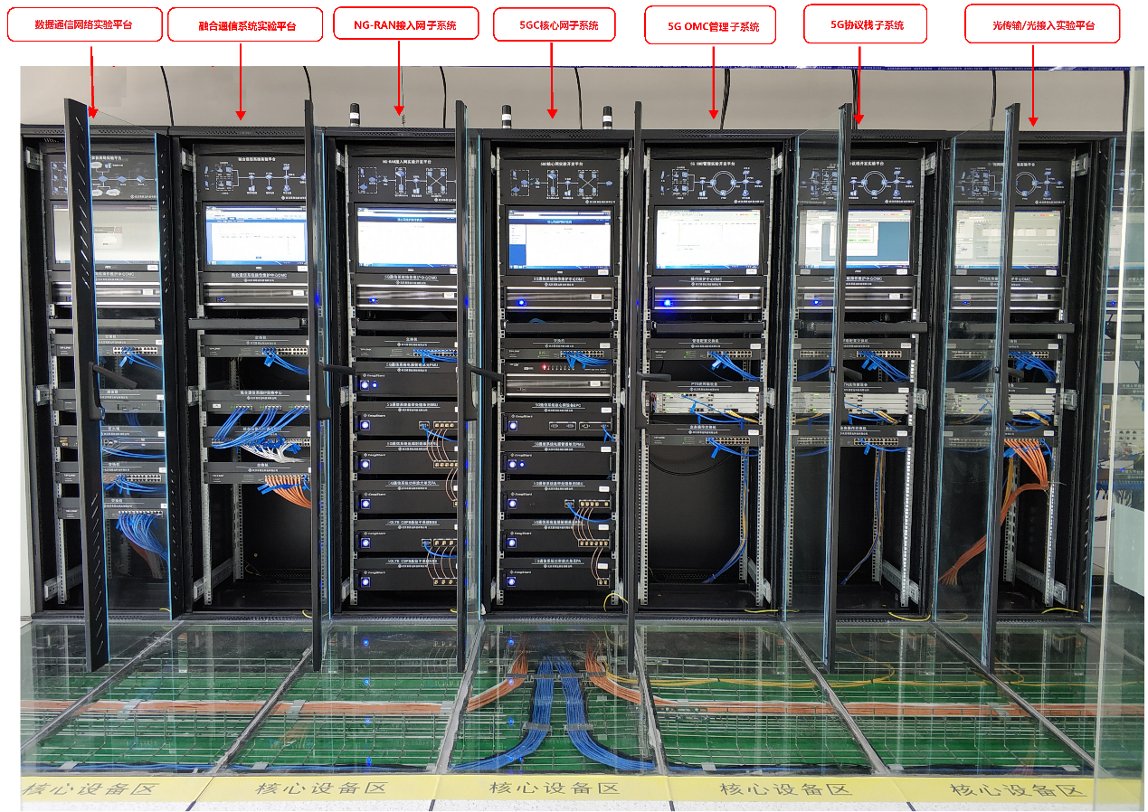 產(chǎn)品詳細(xì)介紹 5G全網(wǎng)融合通信系統(tǒng)是我司按照5G全網(wǎng)融合商用標(biāo)準(zhǔn)自主開發(fā)建立的一個(gè)真實(shí)的5G全網(wǎng)融合通信實(shí)驗(yàn)系統(tǒng),該系統(tǒng)由通信機(jī)房和學(xué)生實(shí)驗(yàn)平臺(tái)組成,兩者能夠?qū)崿F(xiàn)互聯(lián)互通。 通信機(jī)房主要包括數(shù)據(jù)通信子系統(tǒng)、軟交換子系統(tǒng)、5G移動(dòng)通信系統(tǒng)(包括5G OMC管理子系統(tǒng)、5G核心網(wǎng)子系統(tǒng)和5G NG-RAN接入網(wǎng)子系統(tǒng))、5G網(wǎng)規(guī)網(wǎng)優(yōu)子系統(tǒng)、PTN光專輸網(wǎng)子系統(tǒng)、GPON光接入子系統(tǒng)聯(lián)合組成,完整配置有十個(gè)通信機(jī)柜。 學(xué)生實(shí)驗(yàn)平臺(tái)主要有寬帶接入的PC機(jī)、WiFi路由、飛秋、音頻視頻即時(shí)通信軟件、IP電話、程控電話、5G網(wǎng)智能終端實(shí)驗(yàn)箱、5G物聯(lián)網(wǎng)智能終端開發(fā)平臺(tái)、5G手機(jī)、5G CPE和網(wǎng)絡(luò)攝像頭、5G人工智能車聯(lián)網(wǎng)無人駕駛小車以及ONT光貓寬帶接入的電話路由等終端設(shè)備組成。 5G全網(wǎng)融合通信系統(tǒng)通過學(xué)生實(shí)驗(yàn)平臺(tái)的實(shí)驗(yàn)設(shè)備和通信機(jī)房的核心設(shè)備互連互通,實(shí)現(xiàn)寬帶接入網(wǎng)、寬帶城域網(wǎng)、數(shù)據(jù)網(wǎng)、VOIP電話軟交換網(wǎng)、光傳輸技術(shù)、5G移動(dòng)通信網(wǎng)、通信勘察設(shè)計(jì)與概預(yù)算、移動(dòng)網(wǎng)絡(luò)規(guī)劃與優(yōu)化、5G基站建設(shè)與維護(hù)、物聯(lián)網(wǎng)技術(shù)以及當(dāng)下熱門的5G智能終端開發(fā)、5G人工智能車聯(lián)網(wǎng)無人駕駛等等。 包含現(xiàn)代整個(gè)全網(wǎng)融合通信網(wǎng)絡(luò)中常見的各種通信系統(tǒng),如5G移動(dòng)通信、網(wǎng)規(guī)網(wǎng)優(yōu)、光傳輸、光接入、軟交換、數(shù)據(jù)通信、人工智能和物聯(lián)網(wǎng)等。 單個(gè)通信系統(tǒng)能夠獨(dú)立組網(wǎng),在實(shí)驗(yàn)室里構(gòu)建成一個(gè)個(gè)完整的通信系統(tǒng),對應(yīng)的商用終端可以接入,實(shí)現(xiàn)網(wǎng)內(nèi)互相通信。 各個(gè)系統(tǒng)可以獨(dú)立組網(wǎng)和互連互通,學(xué)校可以根據(jù)需要和重要性進(jìn)行裁剪或者分批建設(shè),實(shí)驗(yàn)室建設(shè)靈活。 融合通信系統(tǒng)包括光傳輸、光接入、程控交換、軟交換、數(shù)據(jù)通信等內(nèi)容,與 5G 移動(dòng)通信系統(tǒng)構(gòu)成互聯(lián)互通的現(xiàn)代通信網(wǎng)絡(luò),完成網(wǎng)內(nèi)通信和網(wǎng)間通信各個(gè)通信系統(tǒng)之間要能互聯(lián)互通,各種 5G 終端、程控電話機(jī)、 IP 電話機(jī)、軟電話、ONU/OTN、電腦等,可以互相通信,實(shí)現(xiàn)網(wǎng)絡(luò)之間互聯(lián)互通。 5G全網(wǎng)融合通信實(shí)驗(yàn)系統(tǒng)展示了終端、接入網(wǎng)、匯聚網(wǎng)、骨干核心網(wǎng)整個(gè)通信鏈的承載網(wǎng)、交換網(wǎng)、傳輸網(wǎng)等整個(gè)通信關(guān)鍵技術(shù)要素,實(shí)現(xiàn)云-網(wǎng)-邊-端-業(yè)五位一體化融合實(shí)驗(yàn)平臺(tái)。 各種通信系統(tǒng)按照商用標(biāo)準(zhǔn)建設(shè),既有商用通信網(wǎng)絡(luò)的真實(shí)性,又有實(shí)驗(yàn)教學(xué)的開放性。 建立5G網(wǎng)規(guī)網(wǎng)優(yōu)實(shí)驗(yàn)仿真平臺(tái),把基站戶外前期設(shè)計(jì)與預(yù)算、基站工程施工和后期維護(hù)整個(gè)過程通過學(xué)生進(jìn)入仿真平臺(tái),親自動(dòng)手按實(shí)際仿真的形式參與到項(xiàng)目中去,實(shí)現(xiàn)通信勘察設(shè)計(jì)與概預(yù)算、移動(dòng)網(wǎng)絡(luò)規(guī)劃與優(yōu)化、5G基站建設(shè)與維護(hù)。增加了工程實(shí)踐動(dòng)手能力,并輸出通信網(wǎng)行業(yè)工程人員。 支持配套的5G人工智能和物聯(lián)網(wǎng)開發(fā)平臺(tái)接入,不僅可以學(xué)習(xí)終端類產(chǎn)品的開發(fā),嵌入式以及人工智能和物聯(lián)網(wǎng)系統(tǒng)的開發(fā),同時(shí)和5G移動(dòng)通信系統(tǒng)建立和擴(kuò)展AI+5G的各種現(xiàn)代融合通信應(yīng)用,包括5G人工智能無人駕駛小車等熱門應(yīng)用,同時(shí)可以基于現(xiàn)有平臺(tái)開發(fā)和實(shí)踐任何基于融合通信網(wǎng)的AI+5G的應(yīng)用。