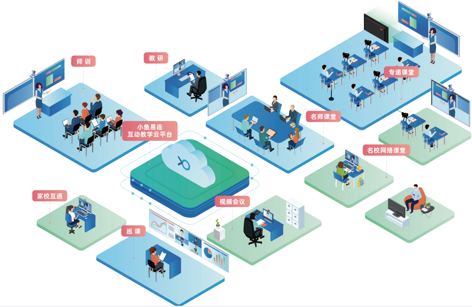 小魚易連打造教育全融合視頻互動解決方案,實現(xiàn)互動、直播、點播、資源分享、教學管理、AI 智能等多場景融合應用,推動教育優(yōu)質(zhì)資源服務新生態(tài)的構(gòu)建,利用智能化云視頻技術(shù)協(xié)助區(qū)域教育信息化從 2.0 時代向 3.0 時代過渡,解決區(qū)域教育信息化發(fā)展不平衡、教育資源供給不充分、信息化應用水平不高等難題。