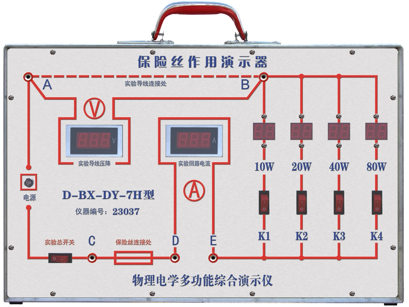 產品詳細介紹 1、外觀結構:整機為全金屬結構,鋁合金框架,全數碼顯示面板,免維護、內置式、全穩壓、節能型多功能綜合演示儀。 2、工作原理:儀器采用二進制數字電路,可預設10W、20W、40W、80W內置功率并可任意編組,實現0-150W之間的10進位預置和電功率的加、減組合,儀器演示無需拆卸與安裝外在功率器件。 3、儀器特點:演示功率、實驗電流、導體壓降,保險絲作用演示數據均為全數字化數碼顯示,演示的量化過程,直觀明了,一目了然。 4、儀器性能: 4.1工作電壓:AC150V~250V,50Hz~60Hz。 4.2工作環境:-20~+40℃。相對濕度:≤90%(40℃)。 4.3演示功率:0~150W,步進功率值10W。 4.4實驗電流:0~10A,短路電流≥12A。 4.5安全標準:儀器各實驗端子對機箱外殼絕緣電阻≥20兆歐。 5、實驗項目: 5.1保險絲的作用實驗 5.2保險絲的選擇實驗 5.3導線的最大電流強度實驗 5.4線路電壓降與功率損失實驗 5.5導體溫升與電阻率的觀察實驗 5.6導體過流與熱膨脹特性觀察實驗 5.7導線替代保險絲的危險性實驗 5.8電路短路時的危險性觀察實驗 5.9導體與絕緣體實驗 5.10滑動變阻器改變電流強度實驗(選配) 5.11半導體單向導電實驗(選配) 6、執行標準:符合教育部JY0364-2004《保險絲作用演示器》有關規定。 |