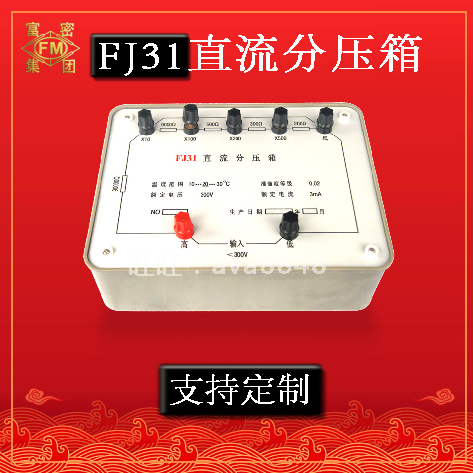 分壓箱兩輸入端固定電阻為十萬(wàn)歐姆,額定輸入電壓300V,額定電流為3mA。通過(guò)多只電阻元件構(gòu)成串聯(lián)電路,采用電阻分壓原理,在不同倍率端獲得不同的電壓倍率。 如在×10倍率: 因此,直流電位差計(jì)“未知”端接“×10”倍率時(shí),就可以將量限提高10倍。 本分壓箱采用溫度系數(shù)小的金屬電阻線(xiàn)制成線(xiàn)繞電阻,并且線(xiàn)徑基本一致,以減小分壓箱在工作時(shí)自熱對(duì)倍率精度的影響。 四、注 意 事 項(xiàng) 1、在測(cè)量未知電阻時(shí)應(yīng)先用萬(wàn)用表進(jìn)行粗測(cè),以便根據(jù)直流電位差計(jì)量程選擇合適的倍率。 2、當(dāng)用萬(wàn)用表粗測(cè),被測(cè)電壓高于36V時(shí),應(yīng)先設(shè)法切斷被測(cè)電壓源,等輸入端引線(xiàn)及電位差計(jì)引線(xiàn)全部接好后,再接通被測(cè)電壓。 3、儀器應(yīng)放在相對(duì)濕度<80%的室內(nèi),空氣中不應(yīng)含有腐蝕性氣體。儀器應(yīng)保持清潔,避免陽(yáng)光曝曬。 4、儀器每年應(yīng)計(jì)量一次,以保證儀器準(zhǔn)確性。 5、在用戶(hù)遵守保管和使用規(guī)則的條件下,12個(gè)月內(nèi)因產(chǎn)品質(zhì)量不良而發(fā)生損壞或不能正常工作時(shí),制造廠應(yīng)無(wú)償?shù)貫橛脩?hù)修理或更換零部件。本廠也可保修期延長(zhǎng)為一年,一年后本廠也可修理,零件費(fèi)用戶(hù)承擔(dān)。 6、因鐵路運(yùn)輸問(wèn)題造成損失,由制造廠與保險(xiǎn)公司負(fù)責(zé),用戶(hù)不承擔(dān)損失。 五、客戶(hù)自己維修注意事項(xiàng) 1、注意線(xiàn)路不焊接錯(cuò)位置,另外,不要產(chǎn)生假焊,焊接時(shí)需熟練人焊接,否則產(chǎn)生假焊導(dǎo)致儀器不能正常使用。這時(shí)用戶(hù)找自己錯(cuò)誤。 2、如FJ31產(chǎn)生問(wèn)題,注意別拆動(dòng)儀器就不會(huì)有問(wèn)題產(chǎn)生,如拆動(dòng)后產(chǎn)生不能正常使用,這時(shí)查一查,測(cè)量一下電阻可能碰斷引起。本廠可以郵寄電阻給客戶(hù)。 3、不管任何方面引起產(chǎn)生FJ31不好使用,最好請(qǐng)用戶(hù)打電話(huà)與本詢(xún)問(wèn)情況清楚,這樣便于雙方配合討論好解決問(wèn)題快。 |