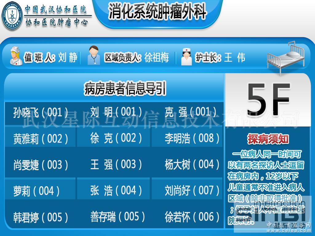 武漢星際互動(dòng)信息技術(shù)有限公司已經(jīng)成功實(shí)施了廣水人民醫(yī)院、香港大學(xué)深圳醫(yī)院,武漢市協(xié)和醫(yī)院,武漢市同濟(jì)醫(yī)院,宜昌市第二人民醫(yī)院、武漢市佛祖嶺社區(qū)醫(yī)院、銀川市第一人民醫(yī)院、鄭州圣瑪婦產(chǎn)醫(yī)院、寧夏第一人民醫(yī)院、瑞安紅十字醫(yī)院、蘇州大學(xué)附一醫(yī)院、湖北咸寧中心醫(yī)院、寧波健民肛腸醫(yī)院、 聊城市第二人民醫(yī)院、秦皇島市第一醫(yī)院、河南鄭州市第一人民醫(yī)院、金壇人民醫(yī)院數(shù)字標(biāo)牌系統(tǒng)項(xiàng)目。