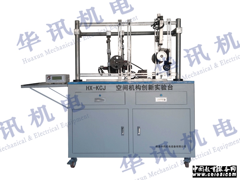 產(chǎn)品詳細(xì)介紹HX-KCJ 空間機(jī)構(gòu)創(chuàng)新實(shí)驗(yàn)臺(tái) 技術(shù)參數(shù): 1、調(diào)速方式及范圍:無級(jí)調(diào)速,0-400r/min; 2、角位移傳感器:1000柵/轉(zhuǎn); 3、直線位移傳感器:量程200mm; 4、減速電機(jī)功率:245w/220v; 5、重量:98kg 6、外型尺寸:1200×600×1350; 基本配置: 1、典型方案裝配圖1套 2、控制系統(tǒng)及教學(xué)軟件1套 3、角位移傳感器2個(gè) 4、直線位移傳感器2個(gè) 5、電機(jī)1臺(tái) 6、隨機(jī)工具1套 實(shí)驗(yàn)?zāi)康模?br/>1、培養(yǎng)學(xué)生機(jī)構(gòu)運(yùn)動(dòng)設(shè)計(jì)中的創(chuàng)新意識(shí)和創(chuàng)新設(shè)計(jì)能力以及應(yīng)用先進(jìn)的分析手段對(duì)機(jī)構(gòu)運(yùn)動(dòng)特性進(jìn)行分析、評(píng)價(jià)的能力。 實(shí)驗(yàn)項(xiàng)目: 1、空間機(jī)構(gòu)傳動(dòng)系統(tǒng)運(yùn)動(dòng)分析 2、空間機(jī)構(gòu)裝配實(shí)訓(xùn) 3、空間機(jī)構(gòu)運(yùn)動(dòng)方案設(shè)計(jì) 4、平面機(jī)構(gòu)運(yùn)動(dòng)方案設(shè)計(jì) 性能特點(diǎn): 1、可拼裝二維和三維的機(jī)構(gòu)系統(tǒng)多達(dá)60種以上;其中,許多典型拼裝方案與實(shí)際相符,如:V型發(fā)動(dòng)機(jī)、汽車后橋驅(qū)動(dòng)系統(tǒng)、沖床自動(dòng)換位機(jī)構(gòu)、空間球鉸機(jī)構(gòu)等; 2、該實(shí)驗(yàn)臺(tái)安裝平臺(tái)主要由底座、平面機(jī)構(gòu)安裝支架(前排四根滑桿)、空間機(jī)構(gòu)安裝支架(后排二根滑桿)和三維機(jī)構(gòu)(蝸桿及圓錐齒輪等)輔助支座組成。 三維機(jī)構(gòu)安裝滑桿可繞托架(后排橫桿)作360°的調(diào)節(jié),而托架可沿兩邊立柱上下調(diào)節(jié),可拼裝實(shí)現(xiàn)任意傳動(dòng)方向、任意運(yùn)動(dòng)形式、任意位置變換的三維(包括二維)機(jī)構(gòu)系統(tǒng) 3、檢測系統(tǒng)集數(shù)據(jù)采集與電機(jī)調(diào)節(jié)控制于一體,以串口通訊,測試數(shù)據(jù)精度高、速度快、穩(wěn)定。 4、所有桿構(gòu)件長度及滑塊偏心距均可進(jìn)行無級(jí)調(diào)節(jié),分析該參數(shù)改變,對(duì)機(jī)構(gòu)運(yùn)動(dòng)特性的影響;