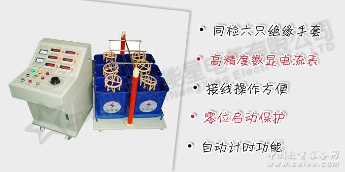 產品詳細介紹ZJS-Ⅱ 絕緣手套(靴)耐壓試驗裝置閱讀次數:4138絕緣手套(靴)耐壓試驗裝置、絕緣靴手套耐壓試驗裝置、防護工具絕緣試驗臺、絕緣靴手套耐壓測試儀、輔助絕緣工具試驗裝置、絕緣靴絕緣手套試驗裝置、帶電防護用具絕緣測試裝置、絕緣鞋絕緣手套試驗機、絕緣靴絕緣手套試驗機DL/T 846-2004 《高電壓測試設備通用技術條件系列標準》ZJS-Ⅱ 絕緣手套(靴)耐壓試驗裝置 使用手冊.pdfZJS-Ⅱ 絕緣手套(靴)耐壓試驗裝置 技術規范書.pdf (注意:右鍵目標另存為下載)絕緣手套(靴)耐壓試驗裝置是絕緣靴(手套)批量試驗的專用設備,有效地解決了以往不規則的測試方法,簡化了測試程序,提高了檢測速度,減輕了檢測強度,保障了檢測人員的安全,可靠地鑒別絕緣手套(靴)的泄漏電流,絕緣老化和工頻耐壓等參數,可同時檢測六只絕緣手套(靴)。 該裝置集高壓電源與控制系統一體化,接線和檢測簡單,布局合理可靠,移動方便,拆裝靈活等特點,是理想的換代產品。 高壓電源、控制系統一體化,接線操作方便,保護功能完善 六只試驗桶,可同時檢測六只絕緣靴或手套 六只數顯電流表,泄漏電流直觀,每塊表頭都有過流自動保護 軟鏈條高壓電極,任意調節電極高度 電極采用H62銅材加工,表面鍍涂CU/EpNi5bc工藝 額定容量:3kVA 輸入電壓:AC220V±10% 50Hz±1 輸出電壓:0-30kV 電壓精度:≤2.5% (F.S) 低壓電流:0-15A 泄漏電流:0-10.0mA 泄漏電流分辨率:0.1mA 電流精度:≤2.0% (F.S) 計時范圍:0-999H 環境溫度:-20℃至50℃