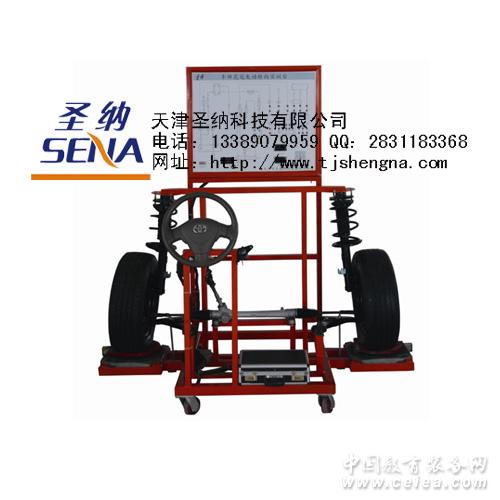 產品功能及特點: 1、可調式懸架,可調整輪胎對地面的附著力并配備車輪轉角儀,可清晰顯示車輪轉向角度。可以進行前輪定位測量和調整; 2、真實可運行的汽車電動式電控動力轉向系統,充分展示電動式電控動力轉向系統的組成結構; 3、操縱方向盤,調節車速信號模擬旋紐,完整演示電動式電控動力轉向系統的工作過程; 4、實訓臺可直觀對照原理圖和實物,認識和分析汽車電控助力轉向系統的工作原理; 5、通過診斷座,可連接汽車故障診斷儀,對電動式電控動力轉向系統進行“ECU”編碼查詢、讀取故障碼、清除故障碼、讀取數據流、執行元件測試、參數設定、波形分析等自診斷功能; 6、通過檢測端子,可直接在面板上檢測電動式電控動力轉向系統電路元件的電信號; 7、配備故障設置系統,可設置單個故障達到16個,符合故障幾十個;手動故障設置盒位置隱蔽。