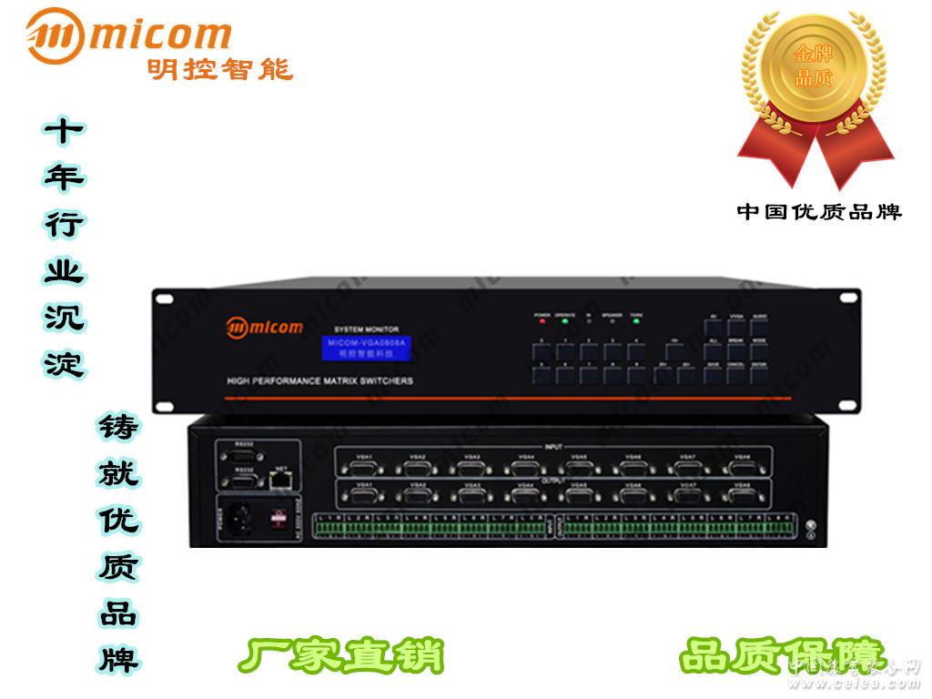 產品詳細介紹VGA矩陣切換器8系列常用型號 MICOM-VGA0808 MICOM-VGA0808A MICOM-VGA0804 MICOM-VGA0804A MICOM-VGA0816 MICOM-VGA1624 MICOM-VGA1632 VGA矩陣切換器的作用: 廣州明控(MICOM)研發生產的VGA視頻矩陣切換器系列產品是高性能寬帶智能矩陣開關設備,是專門為計算機等設備的VGA視頻信號提供高分辨率VGA視頻信號顯示切換而專業設計。可將一路或多路VGA視頻信號通過VGA矩陣切換器的作用,選擇任意一路或多路輸出給顯示設備,并且帶分配功能。 8進8出VGA矩陣帶音頻 型號:MICOM-VGA0808A 8進8出VGA矩陣帶音頻 的功能: 1. 8路VGA電腦信號輸入;8路VGA電腦信號輸出,可完全交叉切換; 2. 8路音頻輸入, 8路音頻輸出,可完全交叉切換,音視頻可以同步或者異步切換;(選配) 3. 嵌入式高亮液晶顯示屏,可實時顯示設備各通道的切換狀態 ; 4. 具備RS232通訊接口,兼容市場所有同類產品的代碼和指令; 8進8出VGA矩陣帶音頻 的特點: 1. 采用500M高帶寬芯片,具有長線驅動功能; 2. 本產品帶有斷電現場切換記憶保護。 3. 內置輪循切換功能,能任意設定間隔時間和通道 ; 4. 內置32組場景存儲功能; 5. 可設置ID地址實現多機級聯,最多可以級聯255臺矩陣; 8進8出VGA矩陣帶音頻 使用方式: 1. 設備面板按鍵直接切換(標配); 2. 紅外遙控器進行遙控切換(標配); 3. 明控專用矩陣管理軟件控制切換(標配); 4. 明控可編程觸摸屏控制切換(選配); 5. 明控中控系統控制切換(選配); 6. Internet網絡控制切換(選配); 8進8出VGA矩陣帶音頻 的參數: VGA視頻信號指標: 1. VGA信號輸入輸出接口: HD15PIN(VGA)母頭 2. 視頻通道帶寬: 500MHz (-3dB),滿載 3. 切換速度:50ns(最長時間) 4. 支持信號類型: VGA,RGBHV,RGBS, RGsB, RsGsBs高清晰度電視(HDTV) 5. 隔離度(串擾): -85dB @10 MHz, -75dB @100 MHz 6. 輸入\輸出助抗:75Ω 7. 支持分辨率:高清480i~1080p/640X480~2560X1600(60Hz) 音頻信號指標: 1. 輸入/輸出接口:鳳凰端子 2. 頻率響應:20 Hz ~ 20 kHz 3. 信噪比(S/N):>100dB 4. 立體聲分離度: >90dB @ 1 kHz 5. 音頻信號類型: 立體聲 6. 輸入阻抗:>10 kΩ, 7. 輸出阻抗:50 Ω 8進8出VGA矩陣帶音頻 產品規格: 1. 國際自適應電源AC 110V - 240V , 50 / 60 Hz 。 2. 功率 32W 3. 尺寸 482mm(長)x 280mm(寬) x 90mm(高) 4. 重量 7.5kg 5. 安裝方式:標準19英寸機架式安裝 6. 產品配置:說明書、控制軟件、電源線、控制線、遙控器,保修卡 VGA矩陣切換器的用途: 廣州明控研發生產的VGA矩陣切換器系列產品可廣泛應用于大屏幕顯示工程、多媒體教學、報告廳、軍事指揮控制中心、交通監控、安防監控、酒店、多媒體會議室、影音展示廳、私人會所、高檔別墅等需要音視頻切換的場合。 VGA矩陣切換器廠家服務: 如有特殊要求,歡迎來電來函咨詢,高科技矩陣中控廠家將為你量身定做,我們將熱情為你服務,謝謝 更詳盡的產品參數請登陸公司主頁查看 http://www.mcvga.com/ http://www.gzmcon.com http://www.gzyueda.com http://www.gzmicom.com/ 或者定做符合工程所需要的產品,歡迎來電咨詢,謝謝!! 廣州明控智能科技有限公司專業從事VGA矩陣、RGB矩陣、視頻矩陣、VGA矩陣切換器、多媒體中控、多媒體中控系統、可編程中控、會議中控、會議中控系統的研發生產與銷售。出色的產品質量、優質的售后服務贏得了廣大客戶的信賴與支持。 |