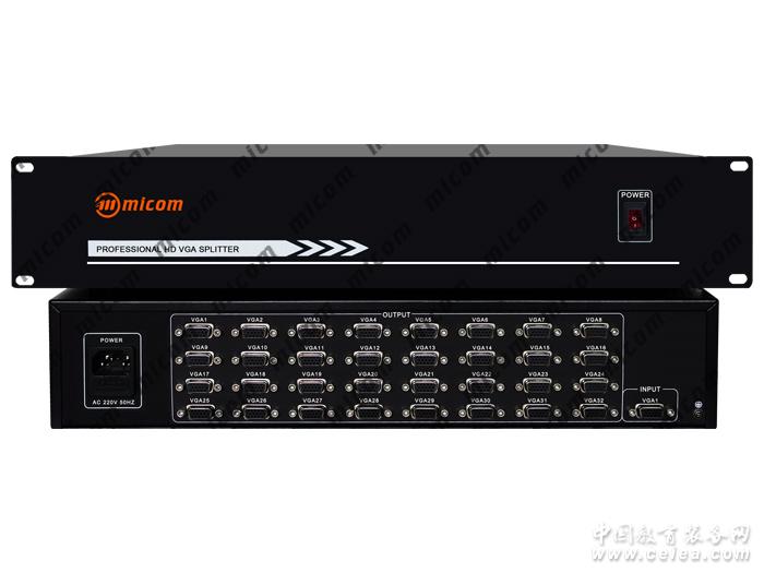 產(chǎn)品詳細(xì)介紹VGA分配器1分32的概述: 明控(MICOM)馳名品牌VGA分配器1分32,vga視頻分配器是一款高性能的電腦信號(hào)的分配設(shè)備,用于一個(gè)電腦信號(hào)驅(qū)動(dòng)多個(gè)顯示屏。vga視頻分配器使信號(hào)傳輸衰減小,使圖像信號(hào)能高保真輸出。 vga視頻分配器主要應(yīng)用于廣播電視工程、多媒體會(huì)議廳、大屏幕顯示工程、電視教學(xué)、指揮控制中心、安防監(jiān)控行業(yè)等要求極高清晰度的場(chǎng)合。本產(chǎn)品適用于各種顯示器和投影信號(hào)的分配。 VGA分配器1分32的特性: 1. 型號(hào):MICOM-VGA0132。 2. 支持1路VGA電腦信號(hào)輸入,32路VGA電腦信號(hào)輸出。 3. 采用500M高帶寬芯片,具有長(zhǎng)線驅(qū)動(dòng)功能。 4. 采用信號(hào)長(zhǎng)距離傳輸失真增益補(bǔ)償技術(shù)。 5. 本產(chǎn)品是具有高可靠性的智能設(shè)備,設(shè)計(jì)中采用容錯(cuò)技術(shù)。 6. 機(jī)箱材質(zhì):金屬面板材質(zhì)。 7. 支持ESDC(人體靜電大于2000V)保護(hù)功能。 8. 支持2560x1600@75分辯率。 9. 支持HV同步信號(hào)邊沿修正(CH/V sync skew free)。 VGA分配器1分32的參數(shù): 1. 切換速度:70ms(最長(zhǎng)時(shí)間)。 2. 輸入電平:模擬信號(hào): 0.5V~2.0Vp-p 。 3. 信號(hào)類型:RGBHV,RGBS,RGsB,RsGsBs,高清晰度電視(HDTV),YCbCr/YPbPr成分視頻 (component video),S-video,復(fù)合視頻(CVBS)。 4. 信噪比:≥99dB。 5. 輸入輸出接口:HD15PIN(VGA)母頭/15針DB插座/D-Sub。 6. 輸入、輸出助抗:75Ω。 VGA分配器1分32的規(guī)格: 1. 電 源AC:110V - 250V , 50 / 60 Hz ,國(guó)際電源標(biāo)準(zhǔn)。 2. 設(shè)備尺寸:482mm(長(zhǎng))x 210mm(寬) x 89mm(高)。 3. 機(jī)架安裝尺寸:19英寸標(biāo)準(zhǔn) 2U高度。 4. 設(shè)備凈重:4.8kg。 5. 設(shè)備包裝標(biāo)準(zhǔn)配置:分配器主機(jī),說明書,電源線,保修卡。 廣州專業(yè)高清VGA分配器廠家,官方網(wǎng)站 www.mcvga.com |