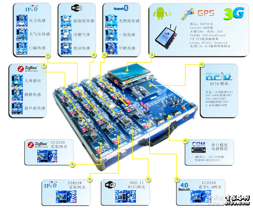 產(chǎn)品詳細(xì)介紹Cortex-A8內(nèi)核高端的多功能物聯(lián)網(wǎng)教學(xué)產(chǎn)品,能夠?qū)W習(xí)主流無(wú)線傳感協(xié)議(IPV6、Zigbee、WIFI、Bluetooth)無(wú)線射頻識(shí)別(低、高、超高頻RFID)以及物聯(lián)網(wǎng)周邊3G、GPRS、GPS教學(xué)解決方案。 |