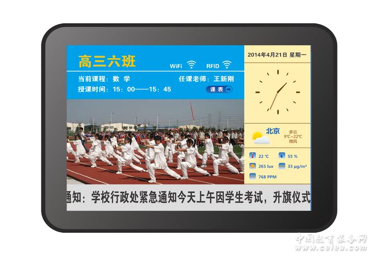 6. 實(shí)現(xiàn)智慧教育的必經(jīng)之路。內(nèi)置高性能嵌入式網(wǎng)關(guān)和甚高頻RFID閱讀器,通過(guò)無(wú)線傳感網(wǎng)WSN自動(dòng)采集教室內(nèi)的溫度、濕度、CO2濃度、光照度、PM2.5濃度、以及教師和學(xué)生的身份信息,實(shí)現(xiàn)教學(xué)環(huán)境的智能化控制和師生信息的自動(dòng)采集,構(gòu)建智慧教室和智慧校園環(huán)境。