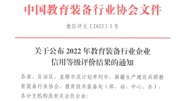 2022年教育裝備行業(yè)企業(yè)信用等級(jí)評(píng)價(jià)結(jié)果公布 |