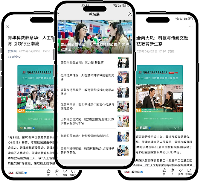 覆蓋教育裝備網(wǎng)+教裝展官網(wǎng)+微信公眾號(hào)+視頻號(hào)+抖音等主流平臺(tái)