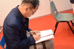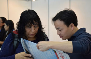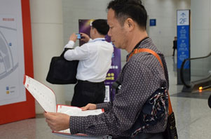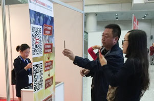 參觀者通過特刊指示牌掃描二維碼瀏覽展會信息 |