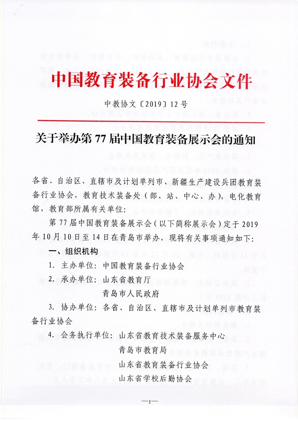 1. 主辦單位:中國教育裝備行業協會
