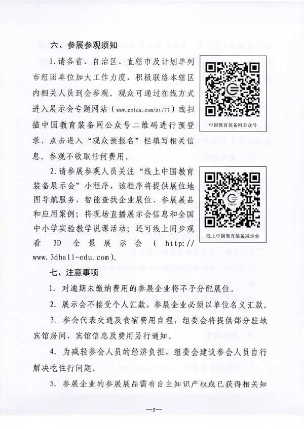5.參展企業的參展展品需有自主知識產權或已獲得相關知識產權所有人的許可。參展產品涉及侵權的,組委會有權責令其終止展示,拒不執行者,將給予全行業通報,三年內禁止參加中國教育裝備展示會。