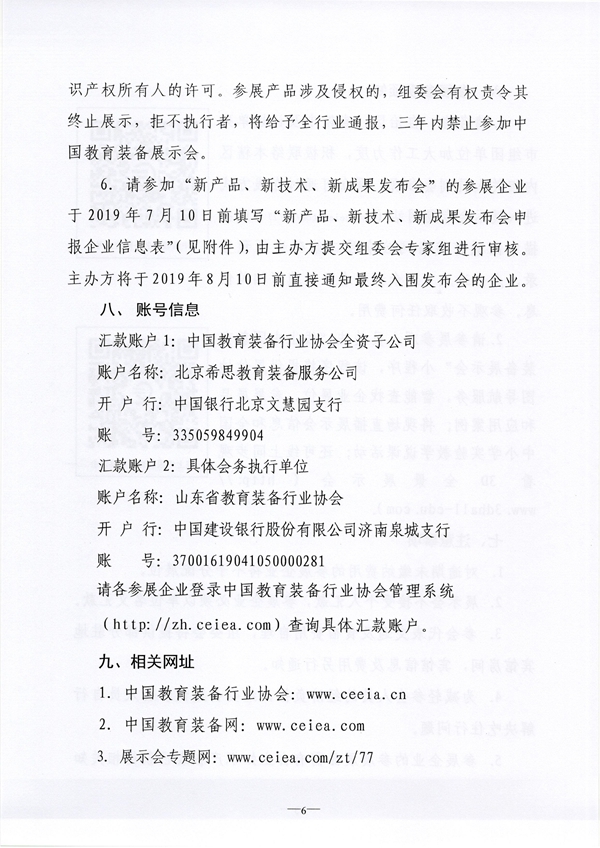 請各參展企業登錄中國教育裝備行業協會管理系統(http://zh.ceiea.com)查詢具體匯款賬戶。