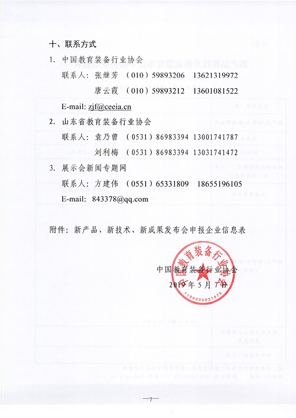 6.請參加“新產品、新技術、新成果發布會”的參展企業于2019年7月10日前填寫“新產品、新技術、新成果發布會申報企業信息表”(見附件),由主辦方提交組委會專家組進行審核。主辦方將于2019年8月10日前直接通知最終入圍發布會的企業。
