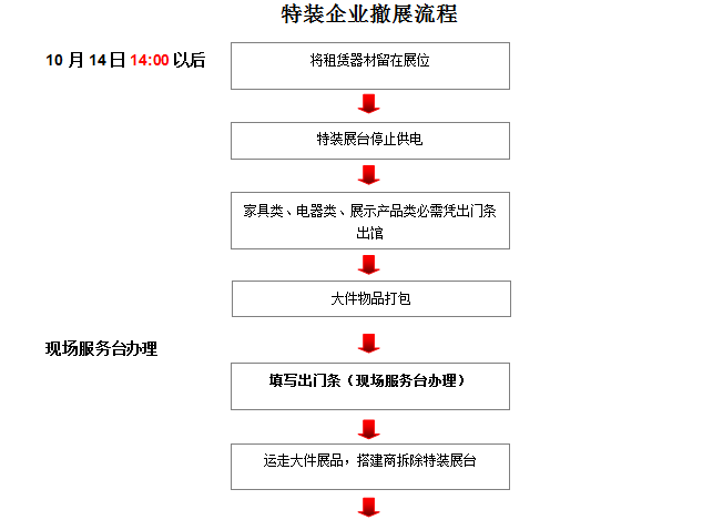 - 在10月14日下午14點(diǎn)前,原則上不允許任何展品撤展。