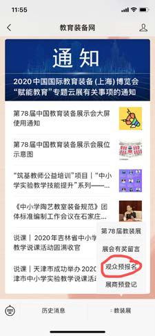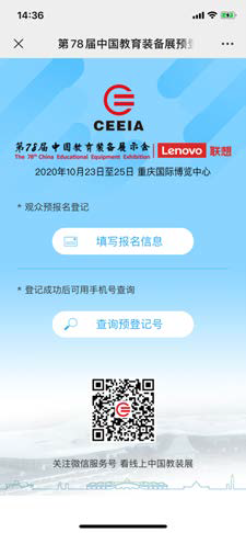 2.手機端注冊:掃描并關注“教育裝備網公眾號”(見圖1);點擊“教裝展”選擇“觀眾預報名”(見圖2);選擇“填寫報名信息”進行報名;