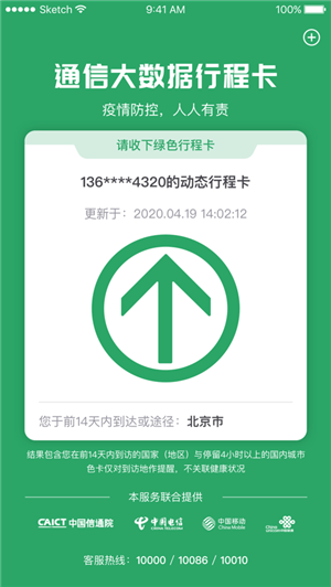 (2)打開“通信行程卡”app,輸入手機號,獲取“通信大數據行程卡”狀態。